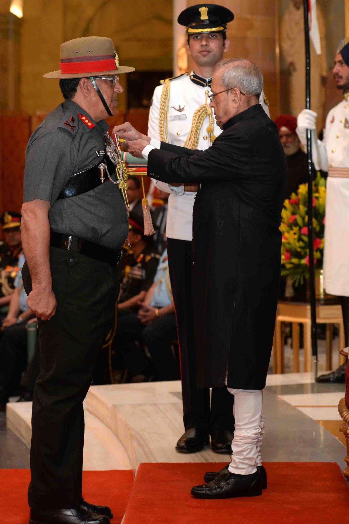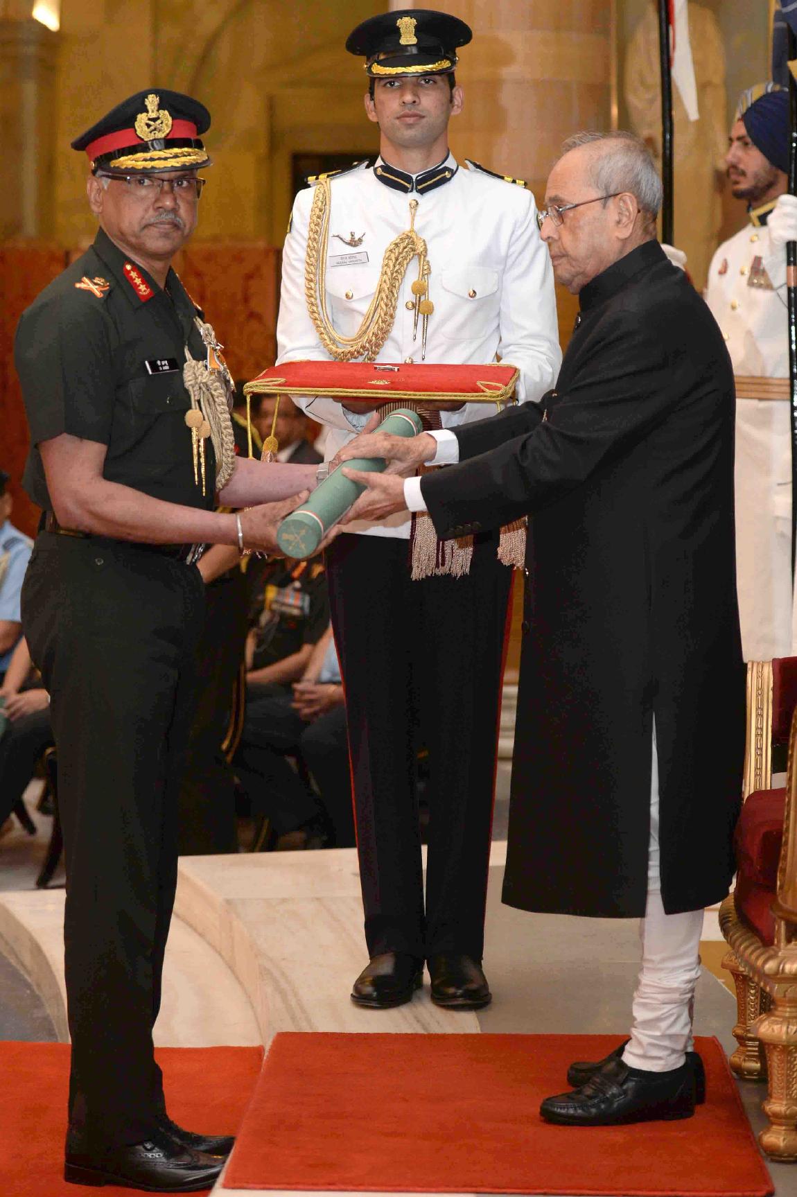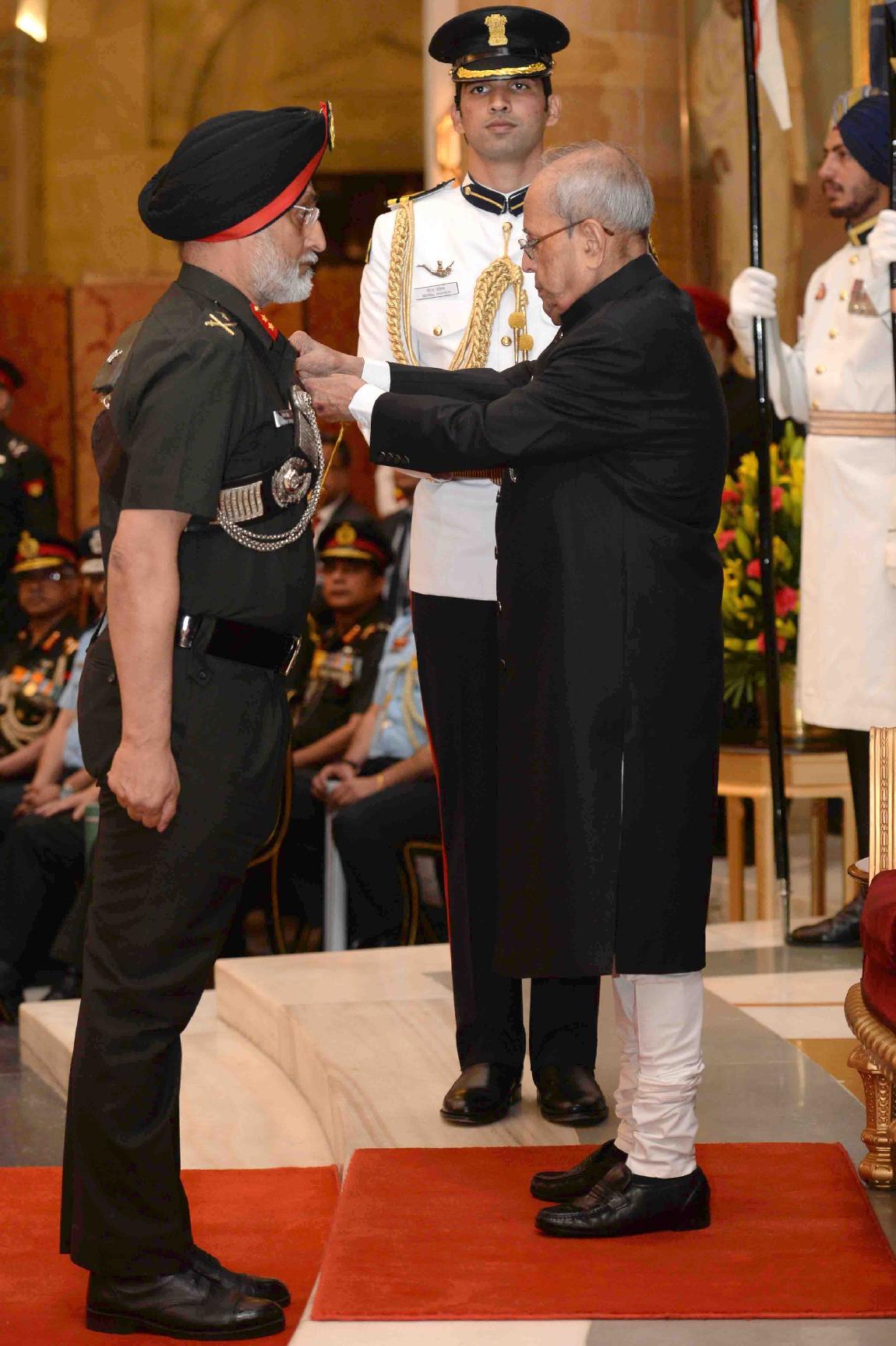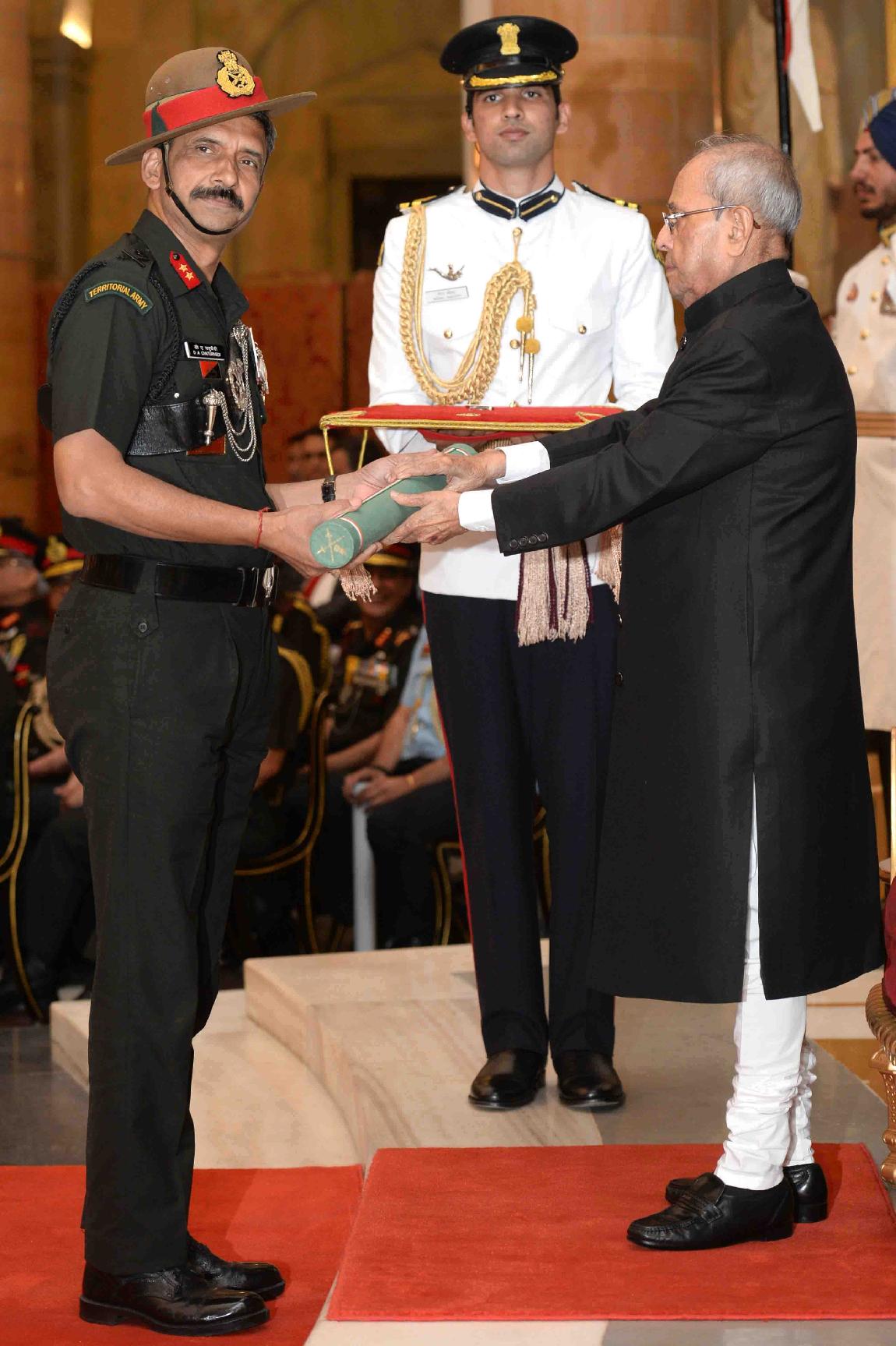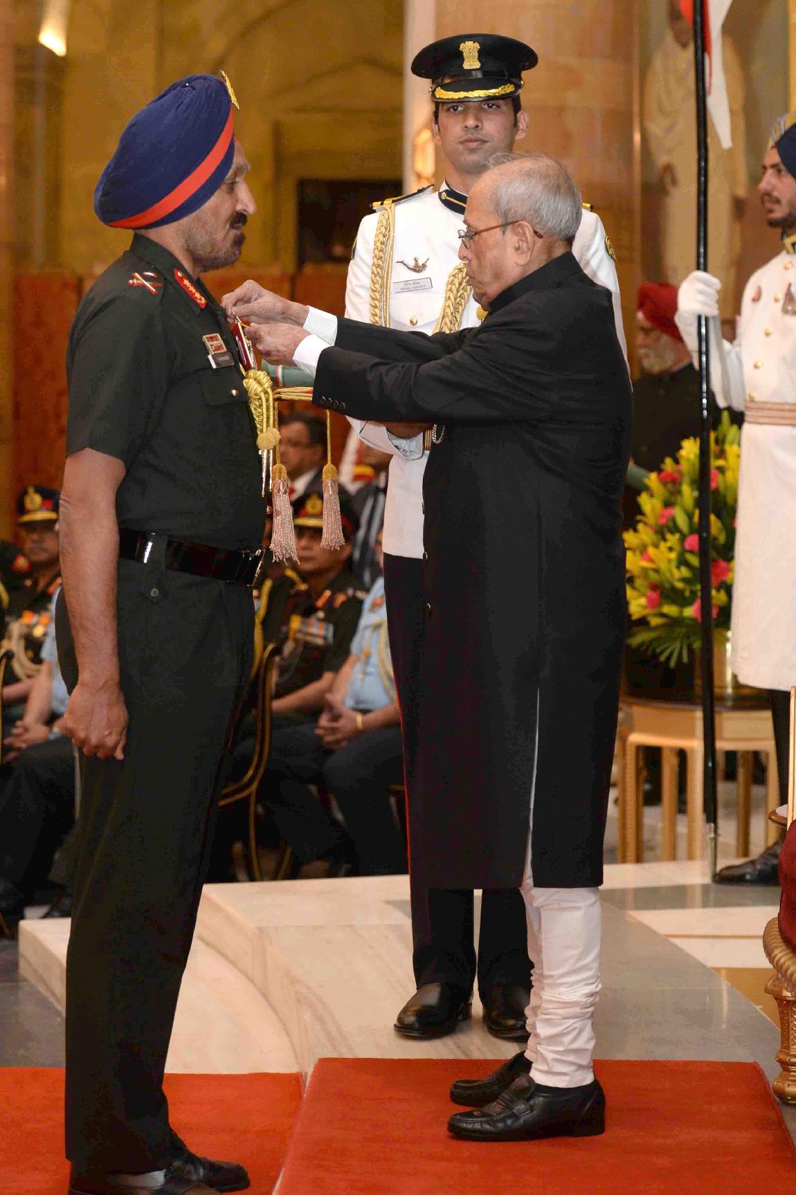 | Caption: | The President of India, Shri Pranab Mukherjee presenting the Gallantry Awards and Distinguished Service Decorations, at a Defence Investiture Ceremony, in Rashtrapati Bhavan on March 20, 2017. |