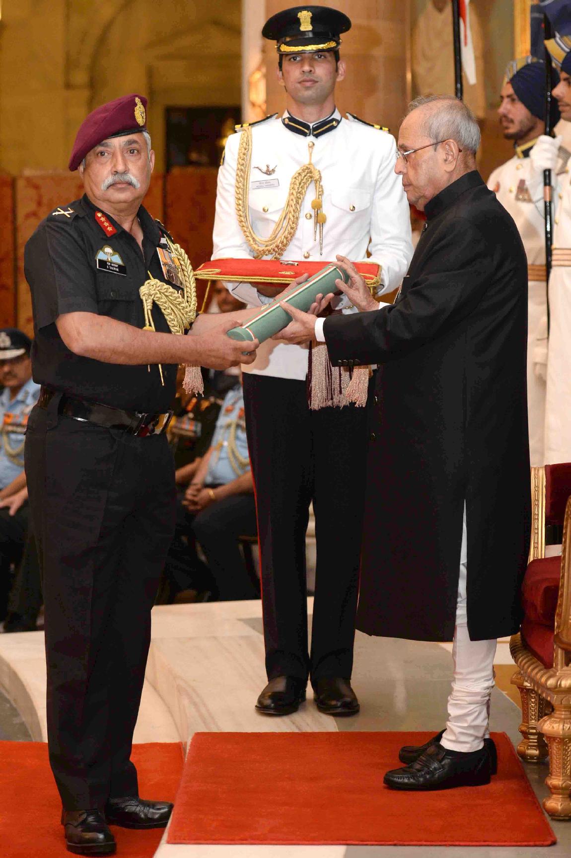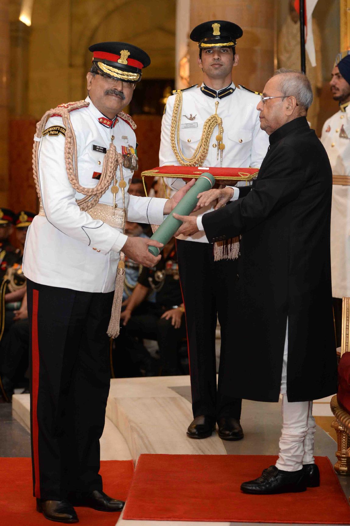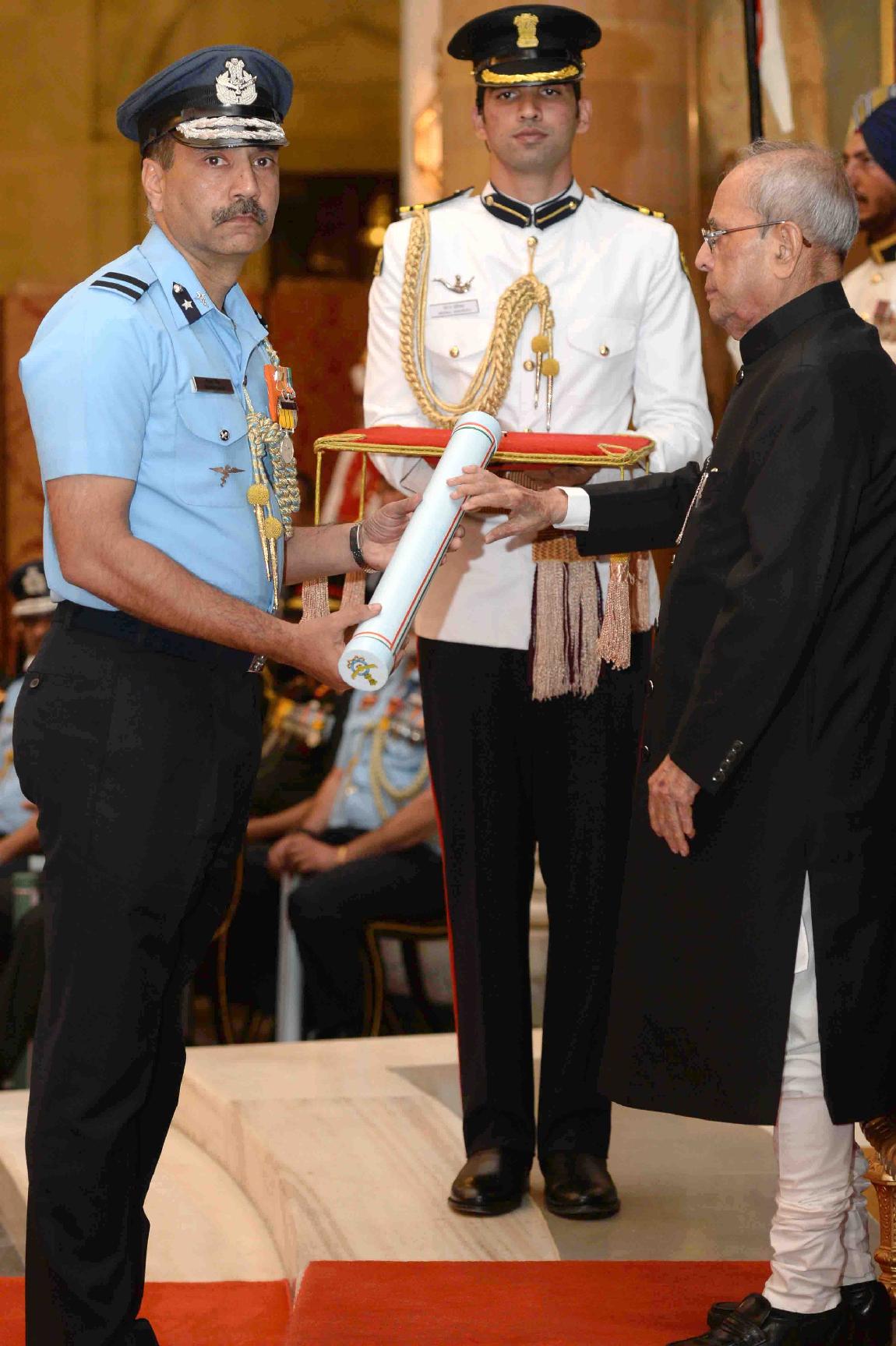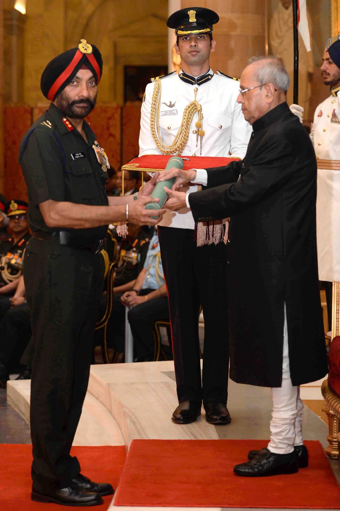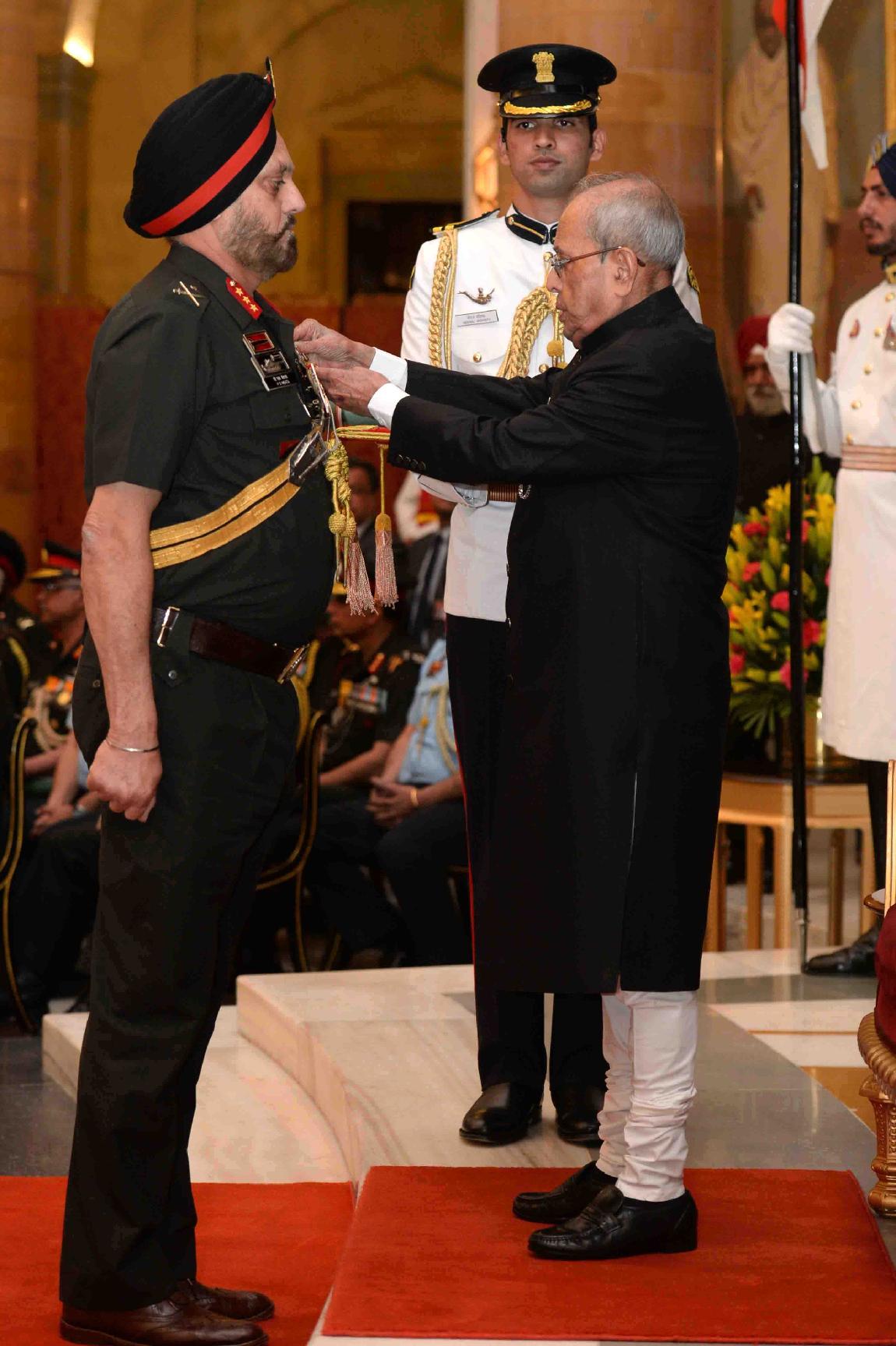 | Caption: | The President of India, Shri Pranab Mukherjee presenting the Gallantry Awards and Distinguished Service Decorations, at a Defence Investiture Ceremony, in Rashtrapati Bhavan on March 20, 2017. |