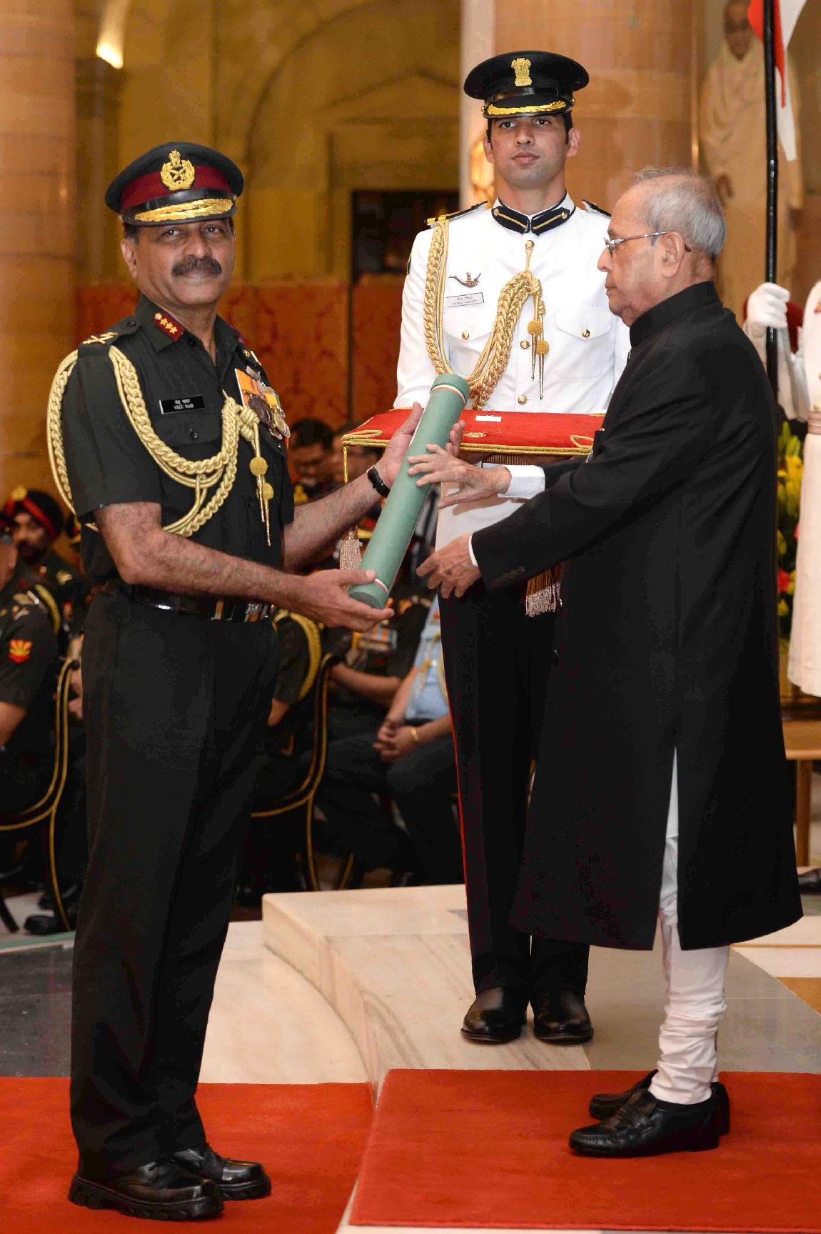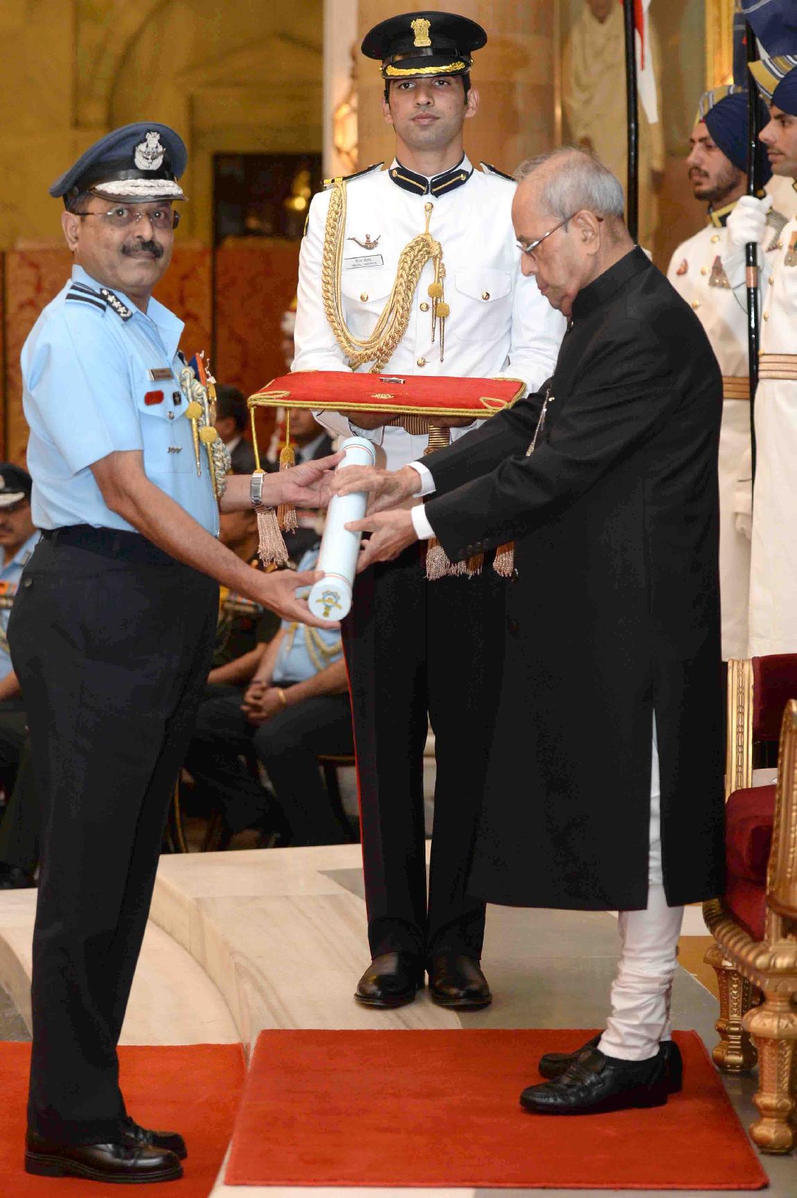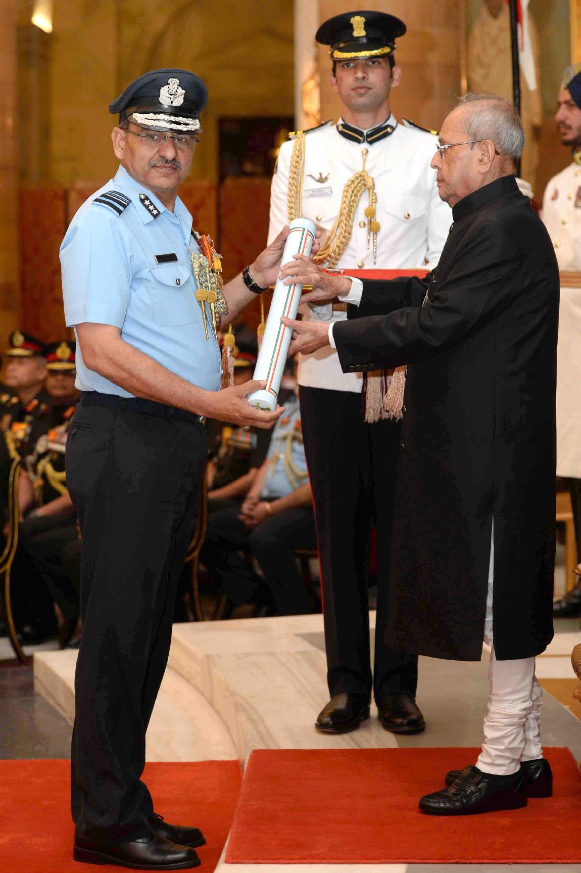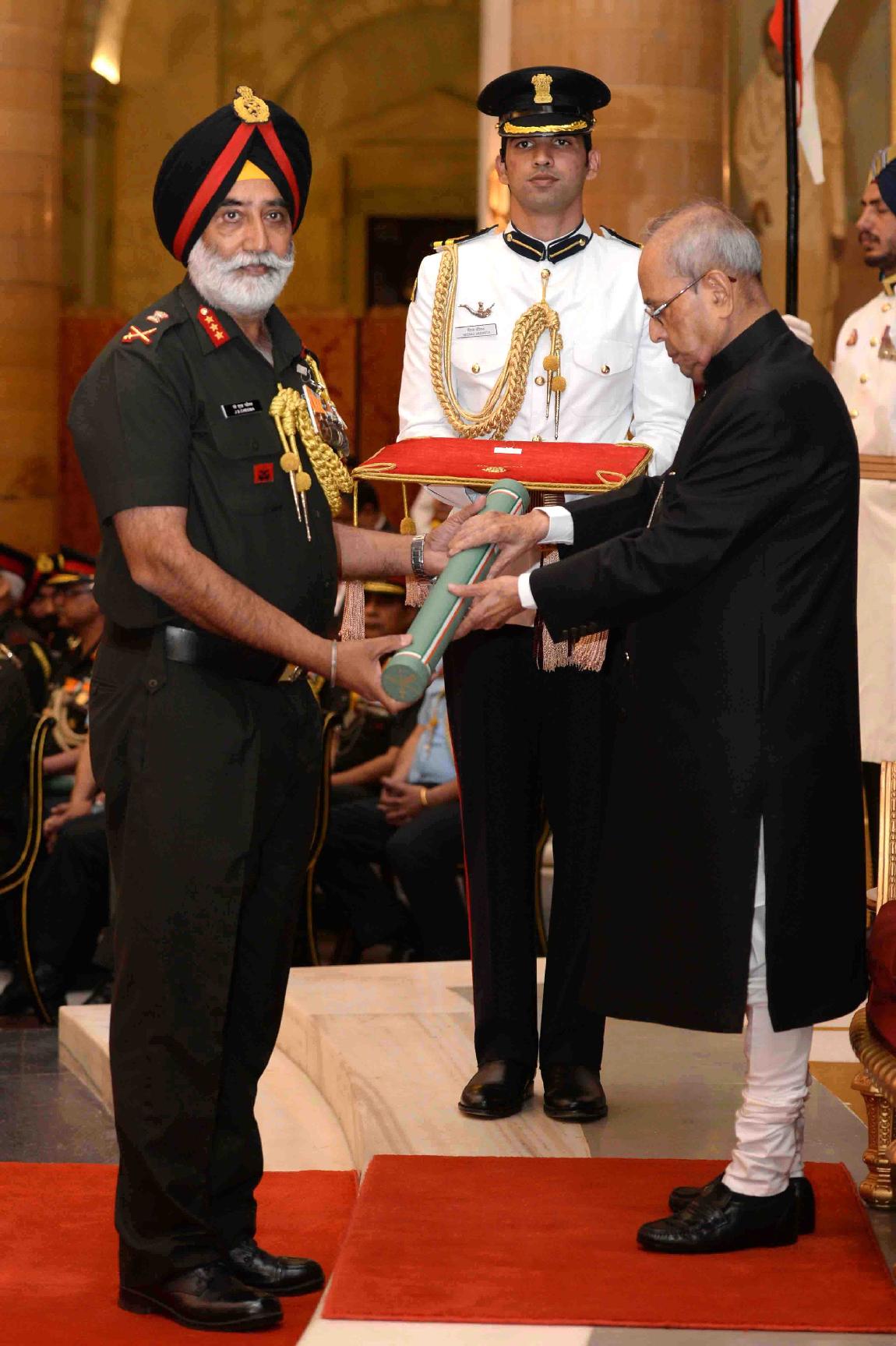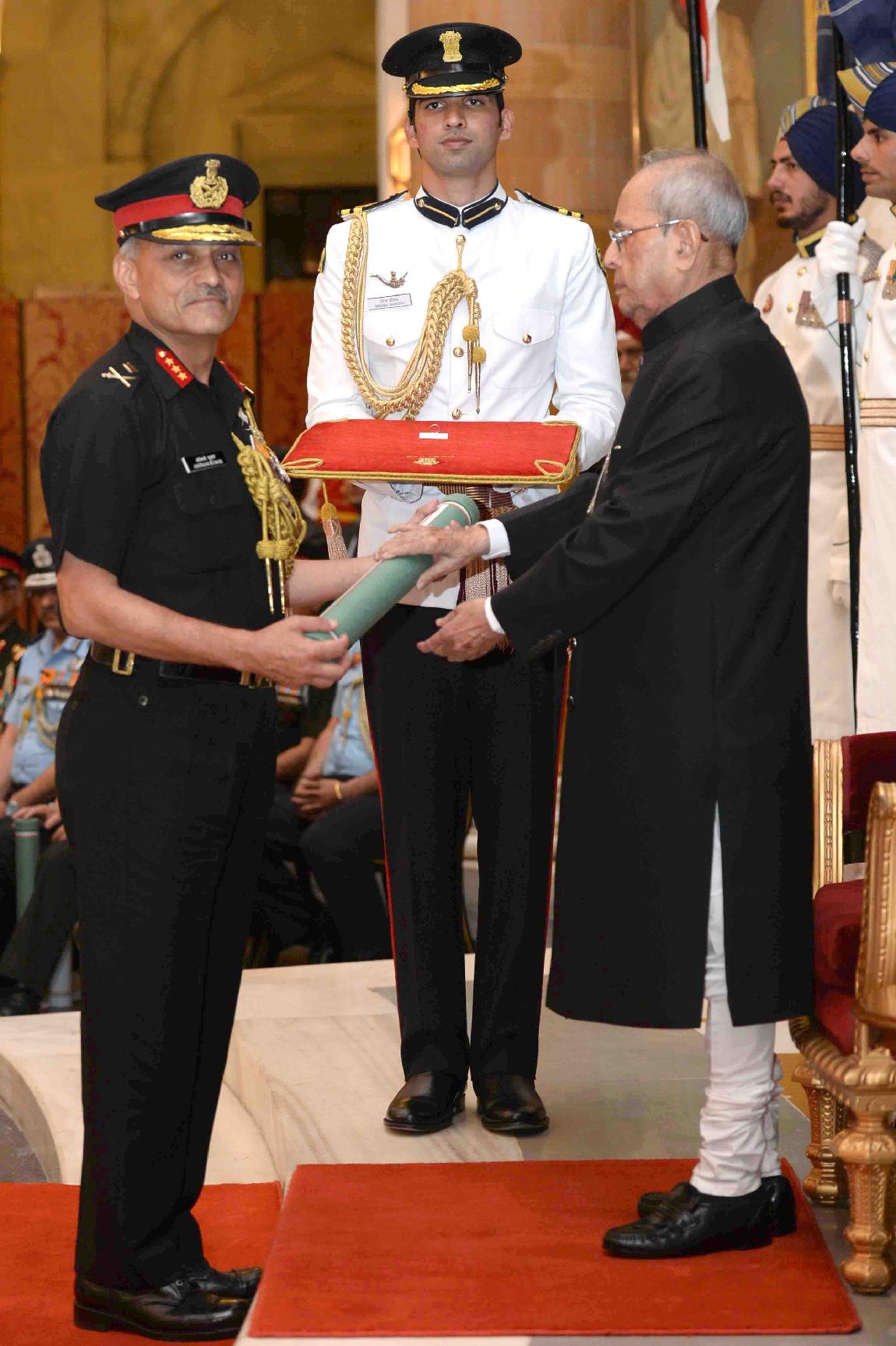 | Caption: | The President of India, Shri Pranab Mukherjee presenting the Gallantry Awards and Distinguished Service Decorations, at a Defence Investiture Ceremony, in Rashtrapati Bhavan on March 20, 2017. |