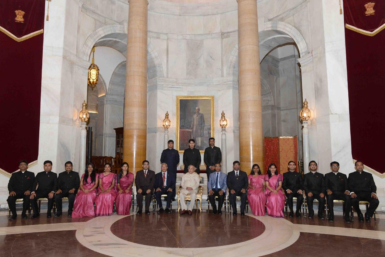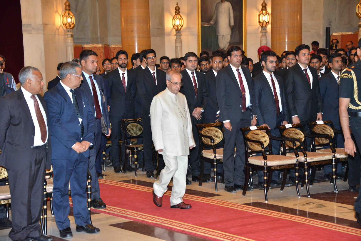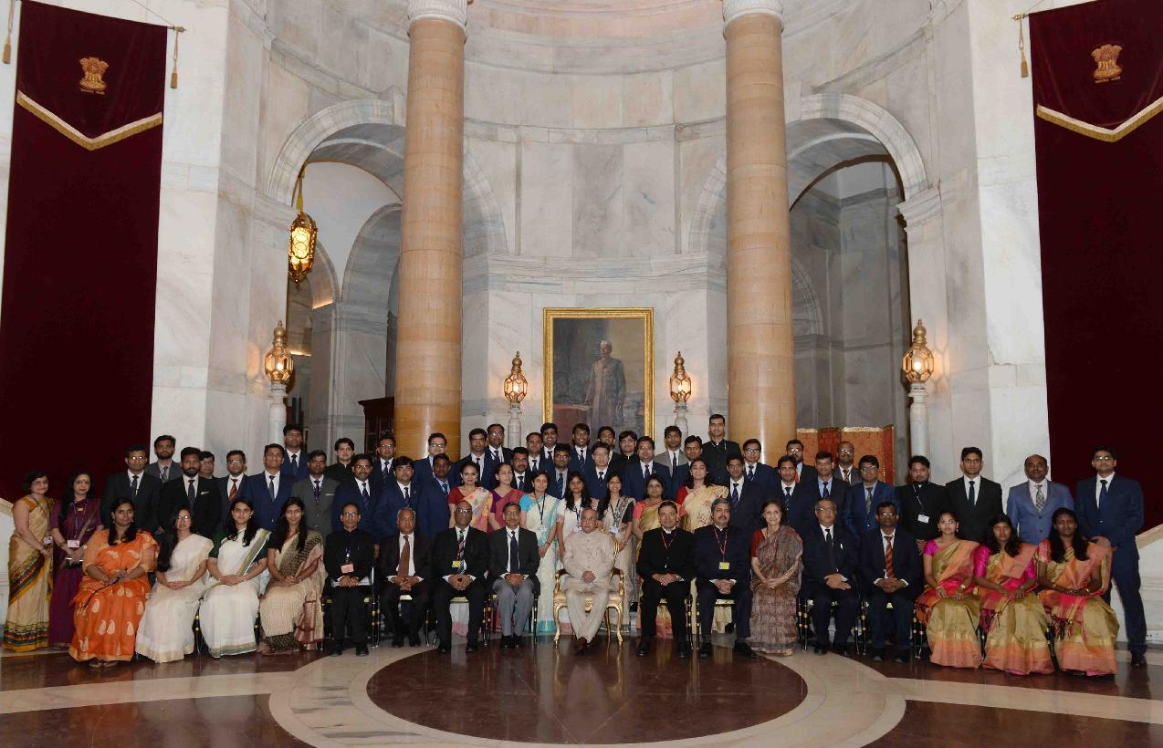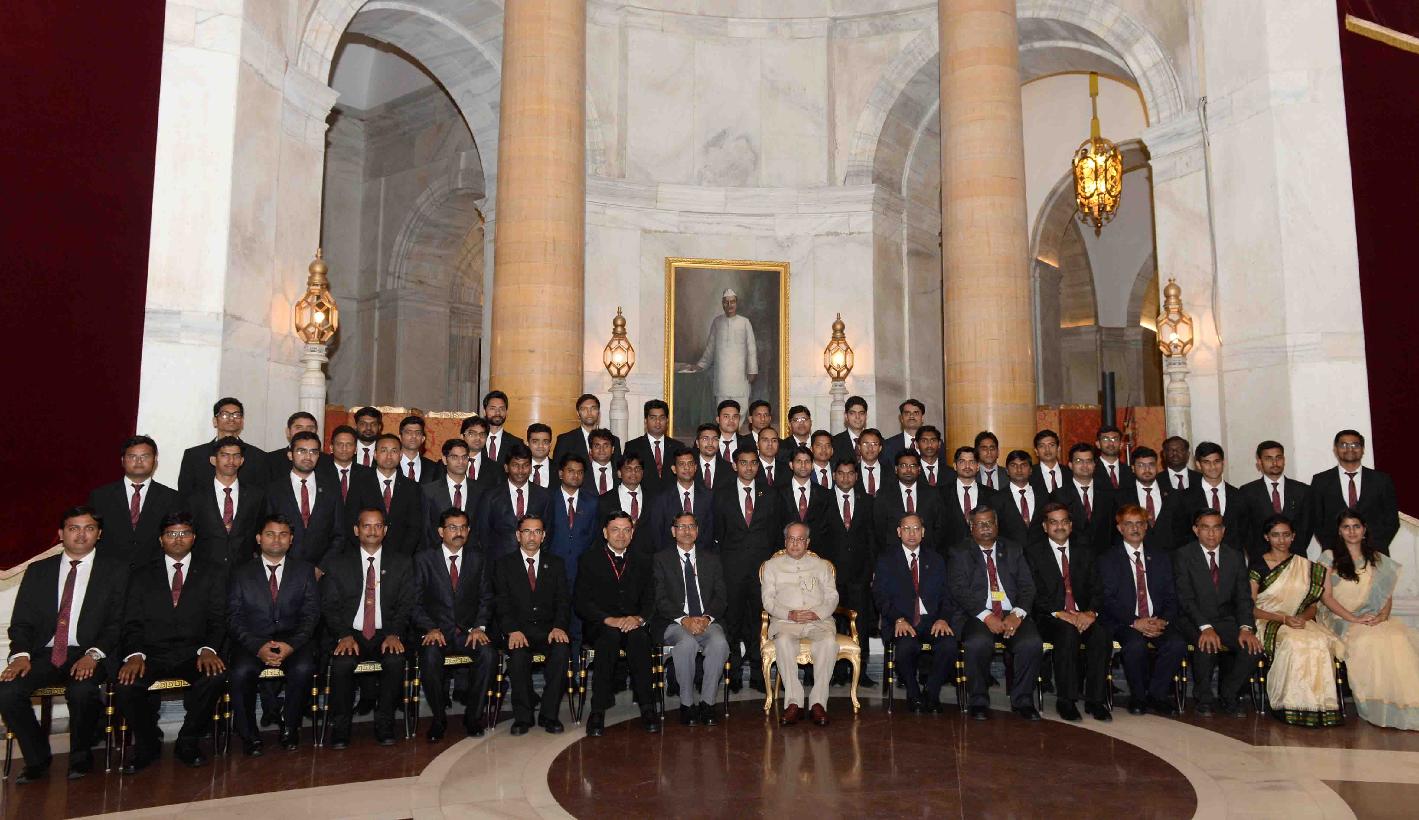 | Caption: | The President of India, Shri Pranab Mukherjee meeting with the Probationary Officers of IRAS, IRPS, IRSS & IRSE of Indian Railway Services and the Probationers of Indian Postal Service (2016 Batch) from Rafi Ahmed Kidwai National Postal Academy, Ghaziabad, at Rashtrapati Bhavan on April 05, 2017. |
