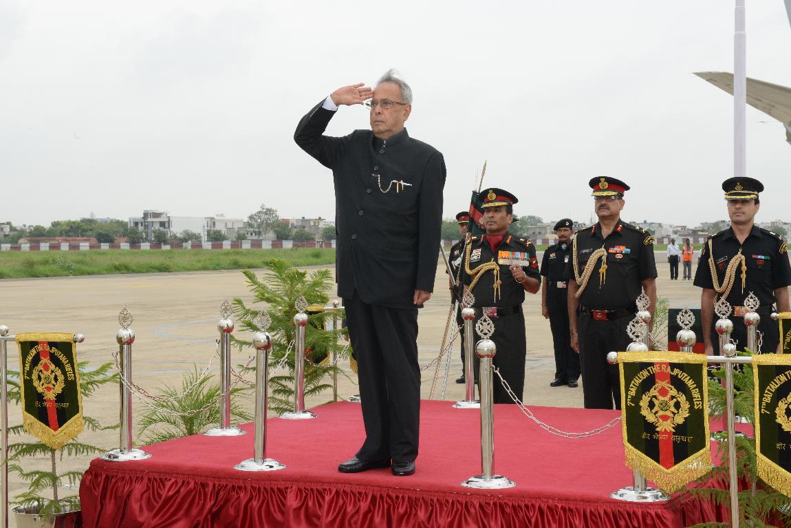 | Caption: | The President of India Shri Pranab Mukherjee Inspecting of Guard of Honour at Jaipur Airport on July 09, 2013 |