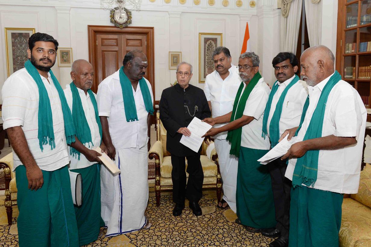 | Caption: | The President of India, Shri Pranab Mukherjee meeting with Shri G.K. Vasan, former Union Minister along with a farmer delegation from Tamil Nadu, at Rashtrapati Bhavan on March 28, 2017. |