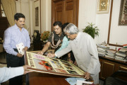 | Caption: | The President of India, Dr A P J Abdul Kalam interacting with Shri Shyam Sundar and others from Prabhat Prakashan to presenting the Book "Hum Honge Kamyab" at Rashtrapati Bhavan in New Delhi on Oct 23, 2006 |