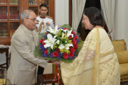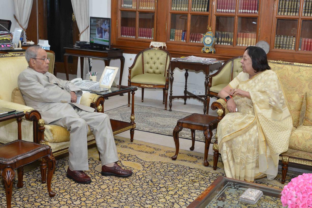 | Caption: | The President of India, Shri Pranab Mukherjee meeting with Dr. Najma Heptulla, Governor of Manipur, at Rashtrapati Bhavan on March 29, 2017. |