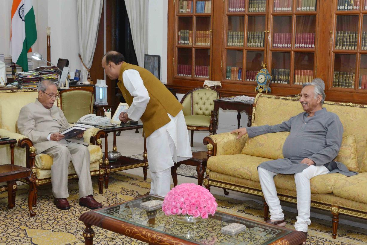 | Caption: | The President of India, Shri Pranab Mukherjee meeting with Shri Mani Shankar Aiyar alongwith Smt. & Shri Mahesh Manzar, Poet and received French and English Translations of Shri Mahesh Manzar's Hindi/Urdu Poems, at Rashtrapati Bhavan on March 29, 2017. |