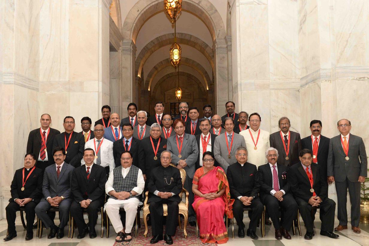 | Caption: | The President of India, Shri Pranab Mukherjee with the recipients of Dr. B.C. Roy National awards for the year 2014,2015 & 2016 and Hari Om Ashram Alembic Research Awards for the years 2008, 2009, 2010, 2014, 2015 & 2016, at Rashtrapati Bhavan on March 28, 2017. |
