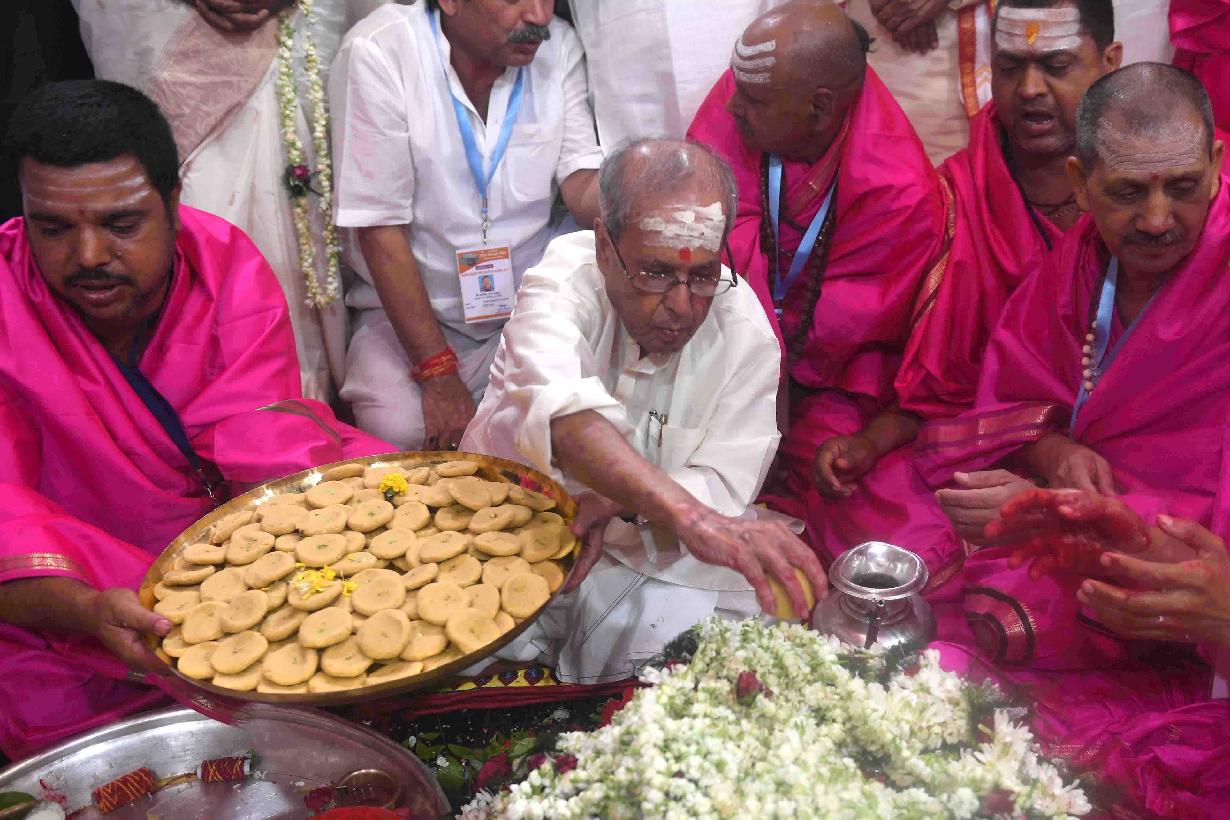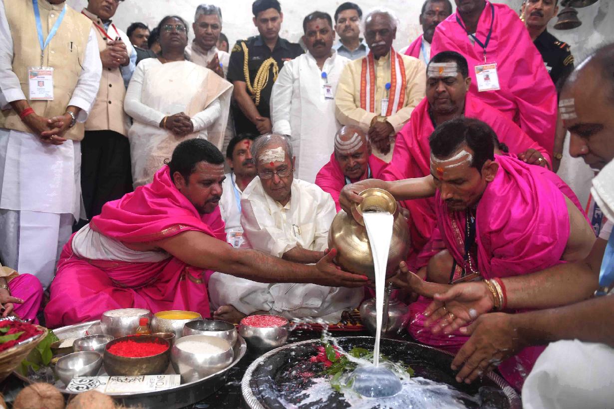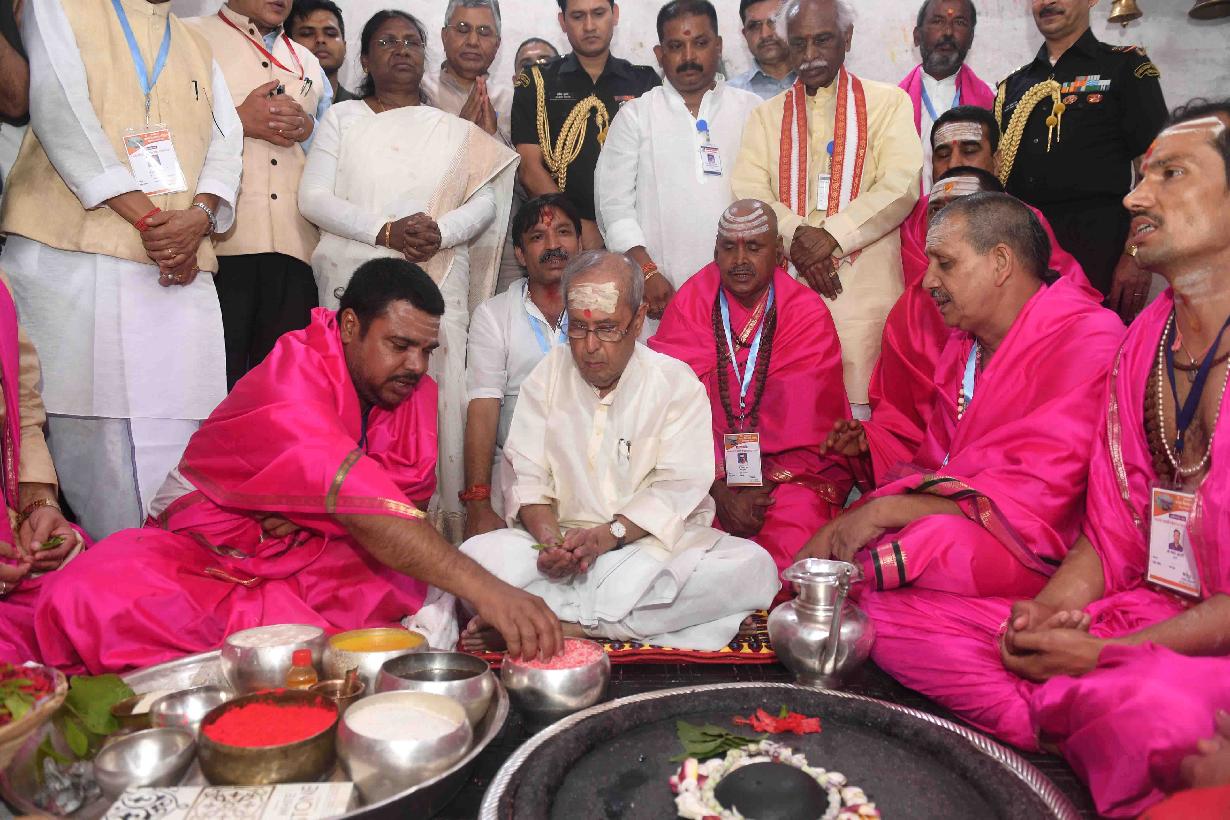 | Caption: | The President of India, Shri Pranab Mukherjee offering Puja at the Baba Baidyanathdham Mandir, at Deoghar, in Jharkhand on April 02, 2017. |