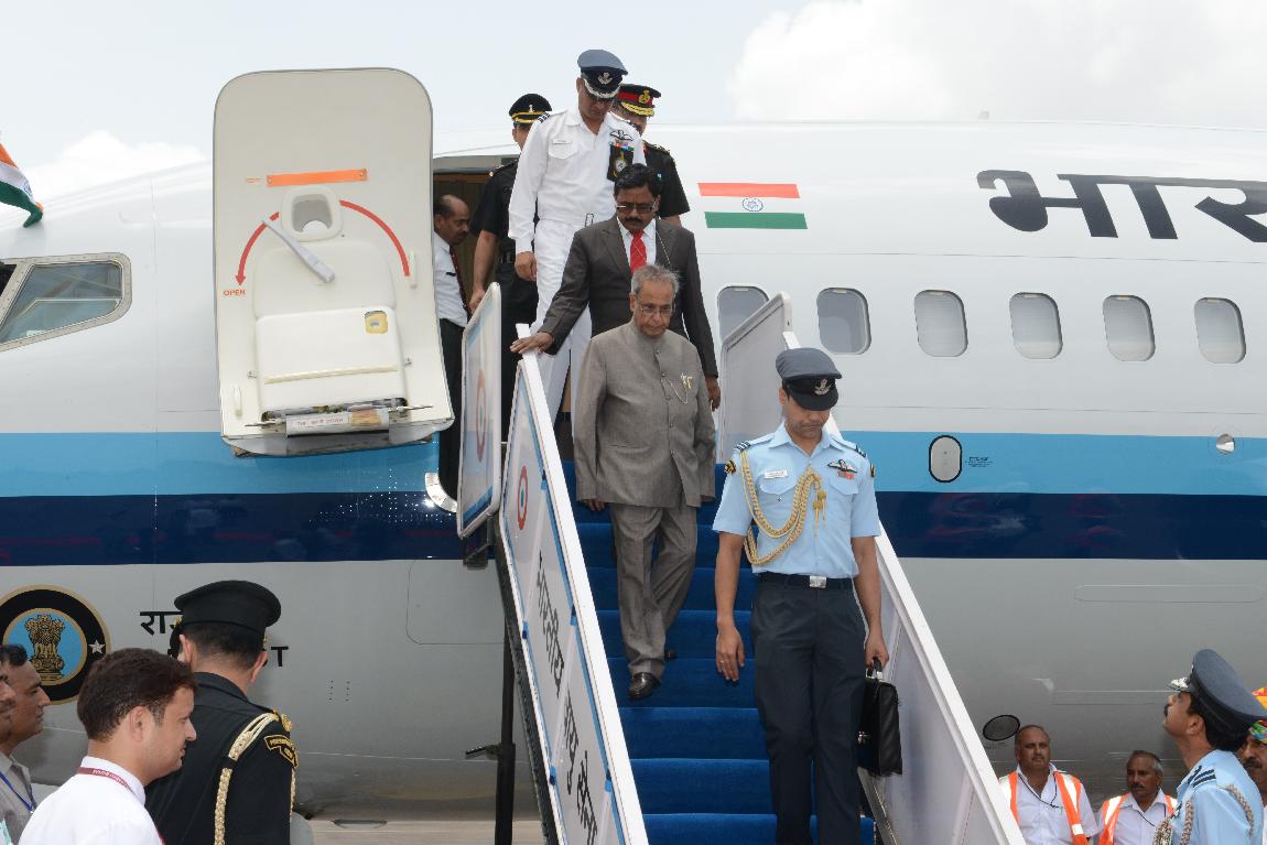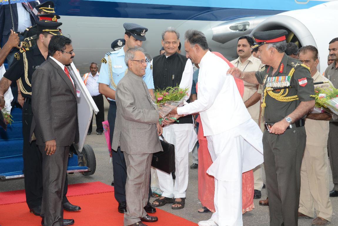 The President of India Shri Pranab Mukherjee Arriving at Jodhpur Airport on July 10, 2013