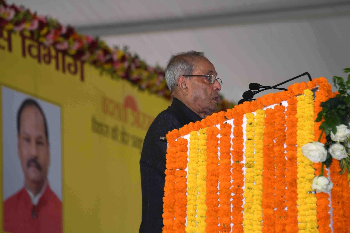 | Caption: | The President of India, Shri Pranab Mukherjee laying the Foundation Stone of Rabindra Bhawan and Haj House, at Ranchi, in Jharkhand on April 02, 2017. |