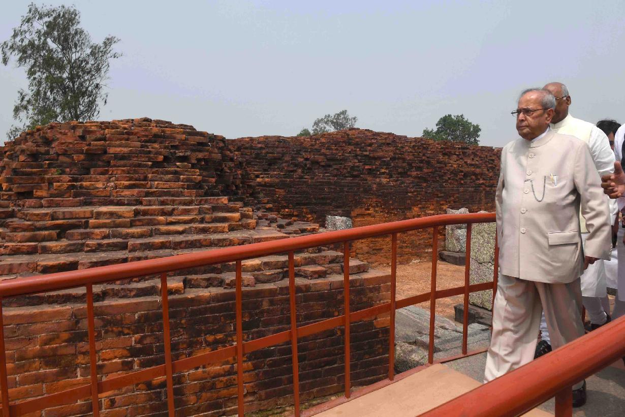| Caption: | The President of India, Shri Pranab Mukherjee visiting the Vikramshila University Monuments and Museum, at Vikramshila University, in Bhagalpur District, Bihar on April 03, 2017. |