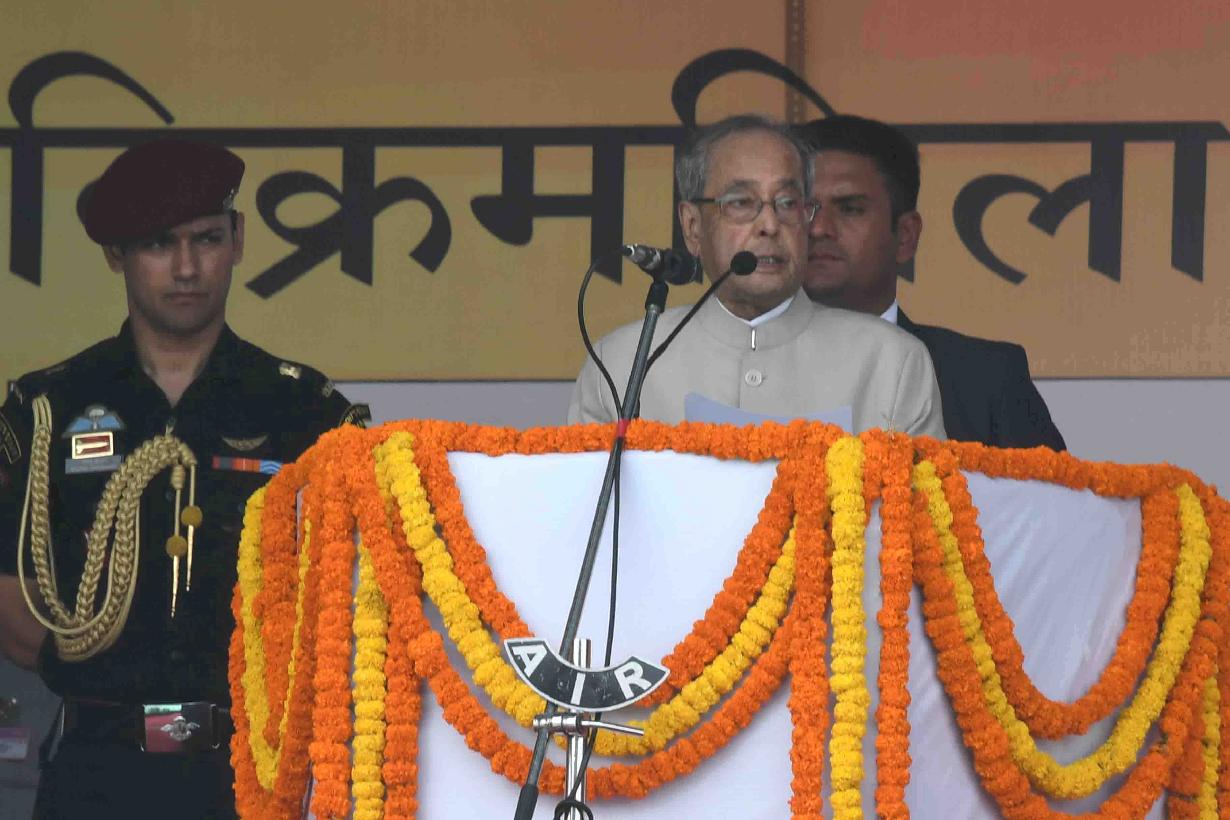 | Caption: | The President of India, Shri Pranab Mukherjee during his visit to the Vikramshila University Monuments and Museum, at Vikramshila University, in Bhagalpur District, Bihar on April 03, 2017. |