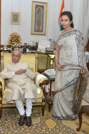 | Caption: | The President of India, Shri Pranab Mukherjee meeting with Ms. Kanika Chakrabarti, at Rashtrapati Bhavan on April 06, 2017. |