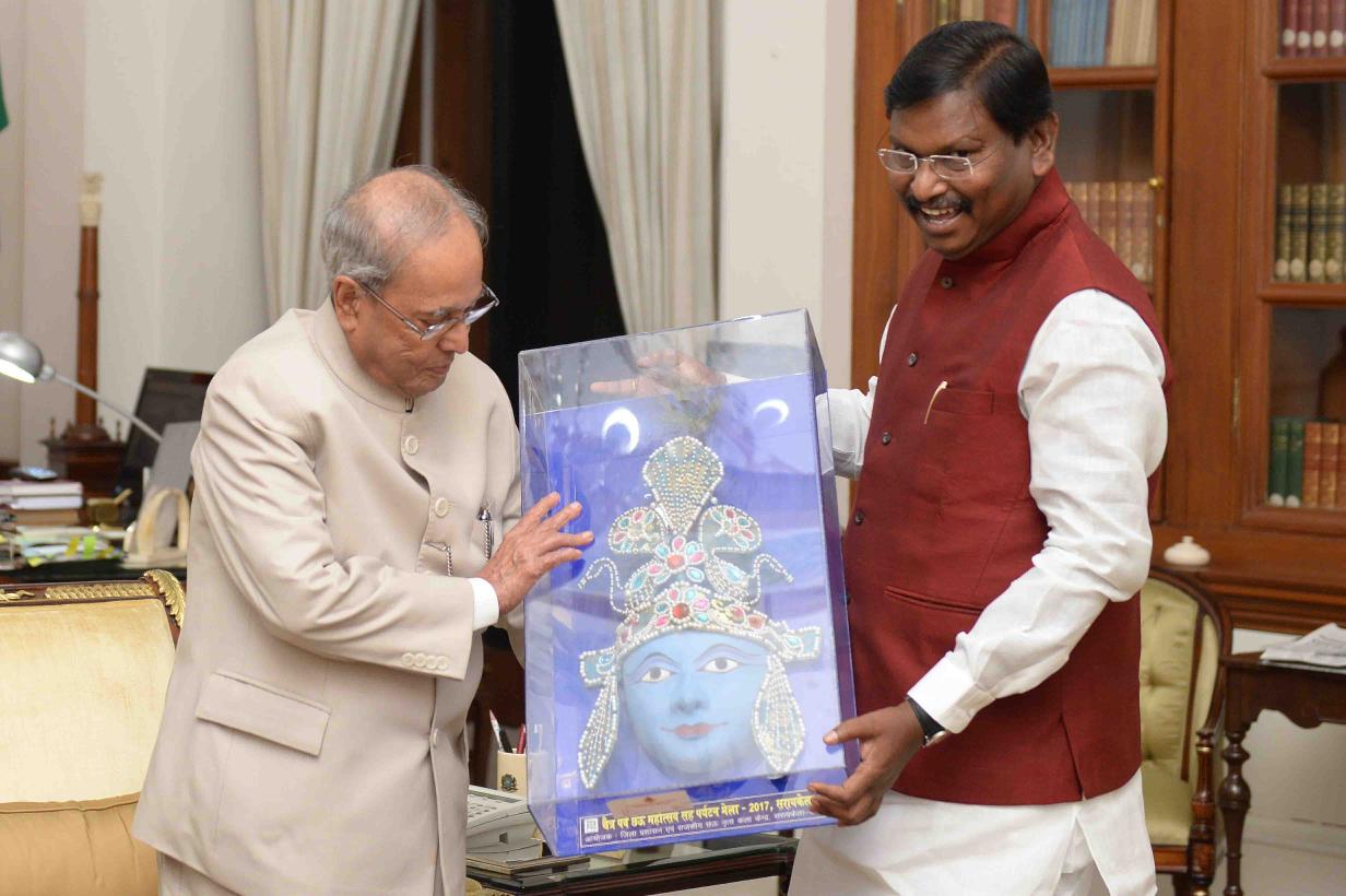 | Caption: | The President of India, Shri Pranab Mukherjee meeting with Shri Arjun Munda, Ex-Chief Minister of Jharkhand, at Rashtrapati Bhavan on April 12, 2017. |