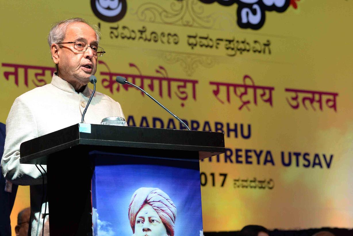 | Caption: | The President of India, Shri Pranab Mukherjee addressing at the inauguration of the Kempe Gowda Festival, organized by the Nadaprabhu Kempegowda Foundation, in New Delhi on April 15, 2017. |