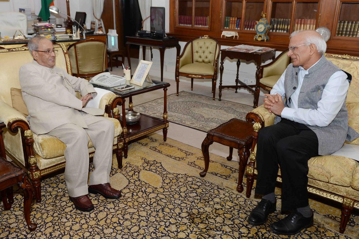 | Caption: | The President of India, Shri Pranab Mukherjee meeting with Prof. Ved Prakash, Chairman, UGC, at Rashtrapati Bhavan on April 05, 2017. |