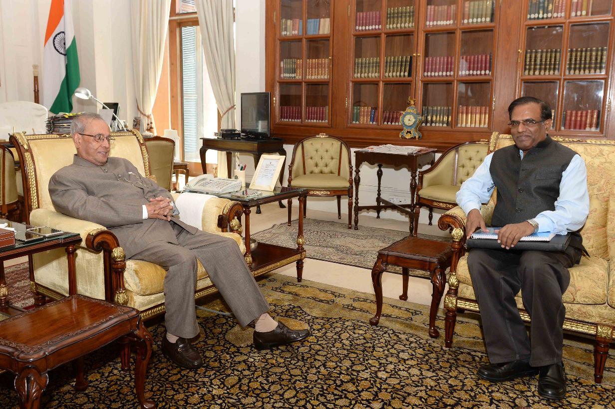 | Caption: | The President of India, Shri Pranab Mukherjee meeting with Dr. Kameshwar Prasad from AIIMS, at Rashtrapati Bhavan on July 22, 2017. |