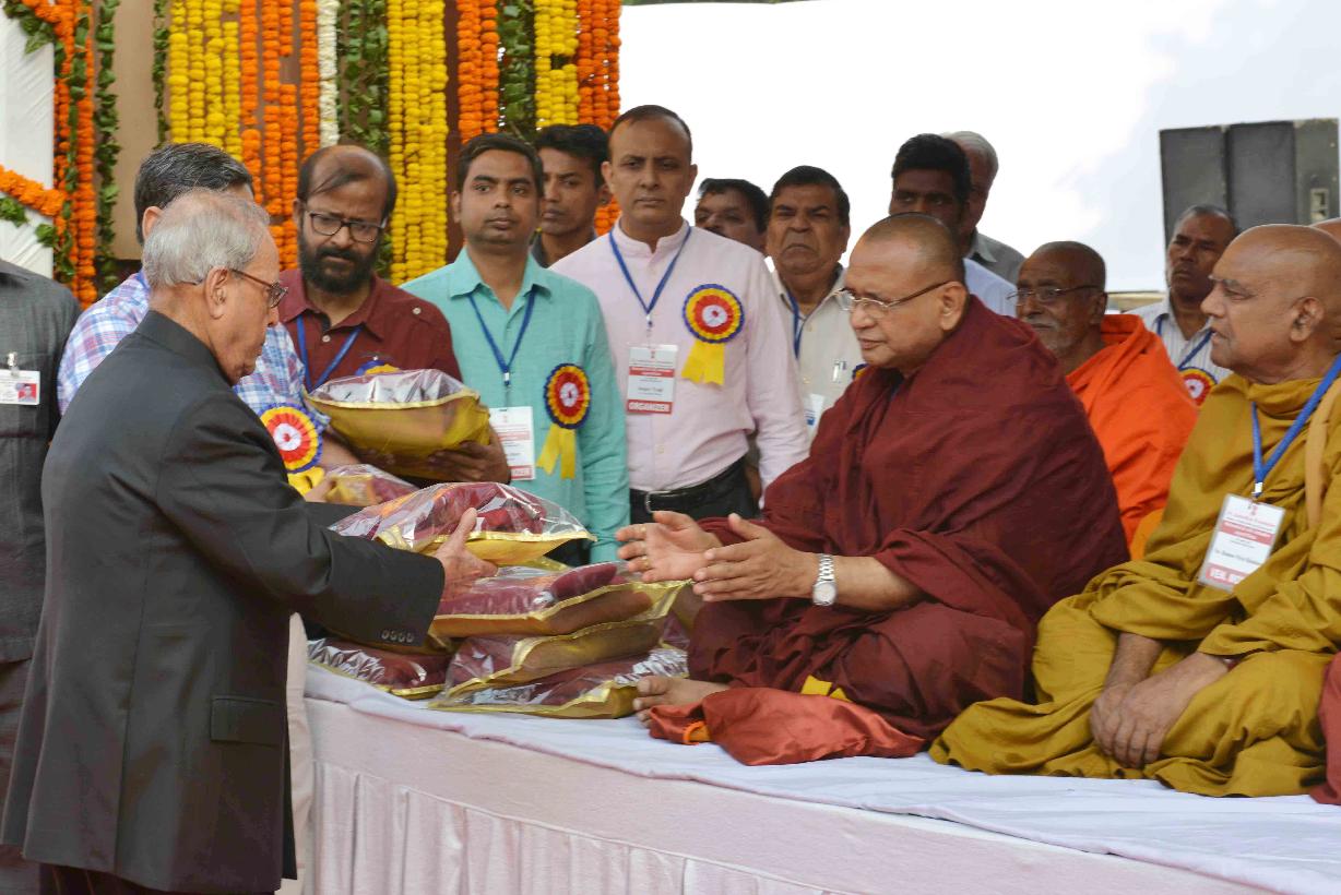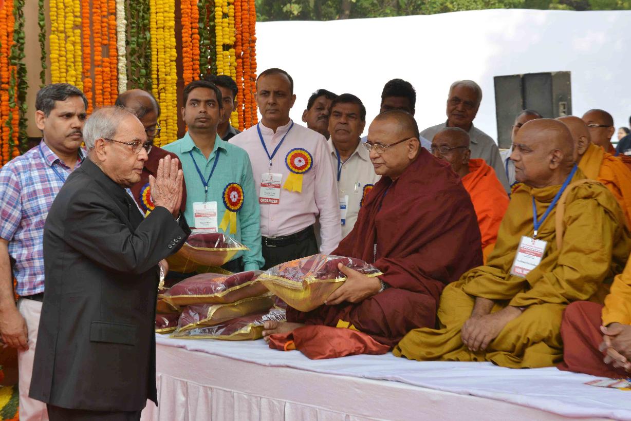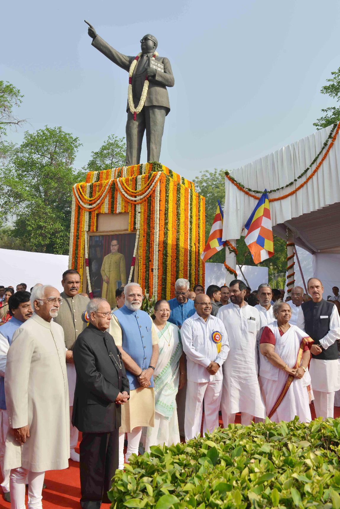| Caption: | The President of India, Shri Pranab Mukherjee during paying floral tributes ceremony of Babasaheb Dr. B.R. Ambedkar on the occasion of his Birthday at Parliament House Lawns, in New Delhi on April 14, 2017. |