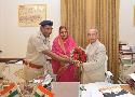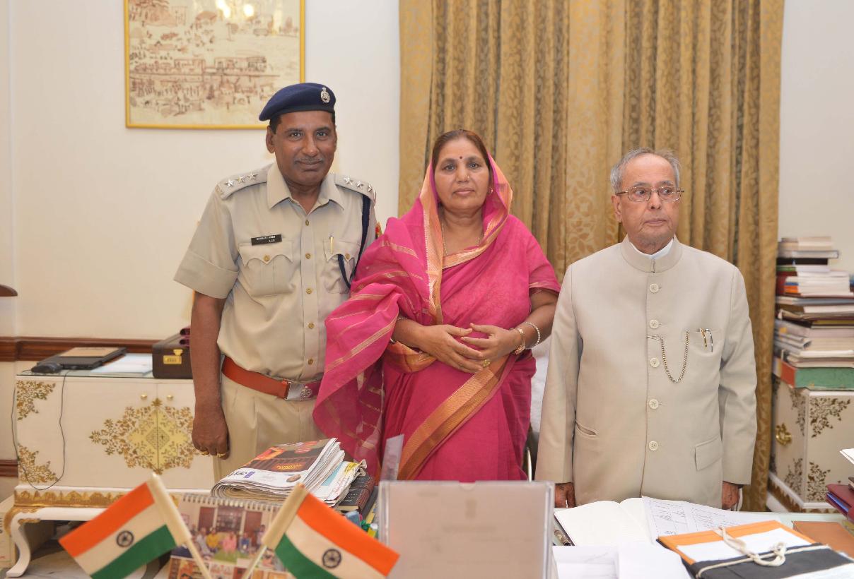 | Caption: | The President of India, Shri Pranab Mukherjee meeting with Shri Niranjan Singh, ACP Rashtrapati Bhavan Security along with his wife, during a farewell call, at Rashtrapati Bhavan on April 29, 2017. |
