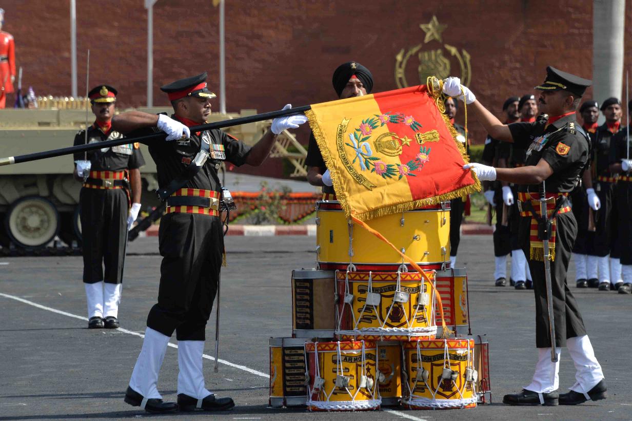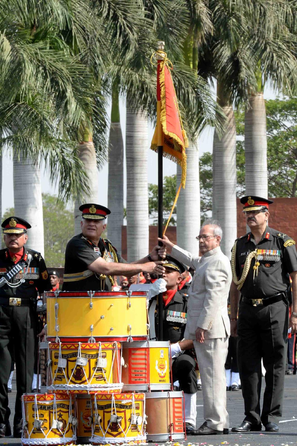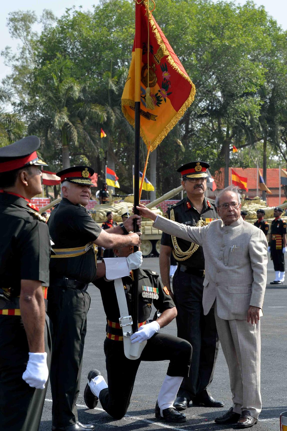 | Caption: | The President of India, Shri Pranab Mukherjee presenting the President's Standards to Armoured Corps Centre and School Ahmednagar, at Ahmednagar, in Maharashtra on April 15, 2017. |