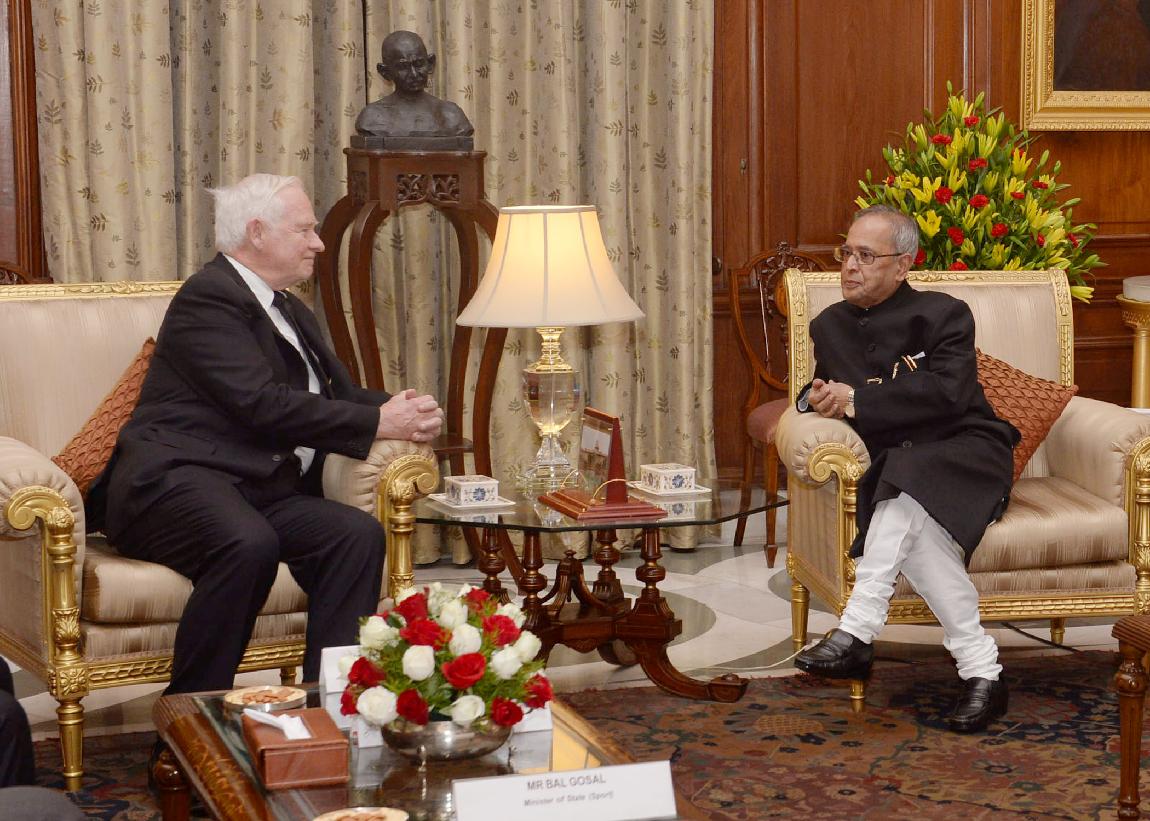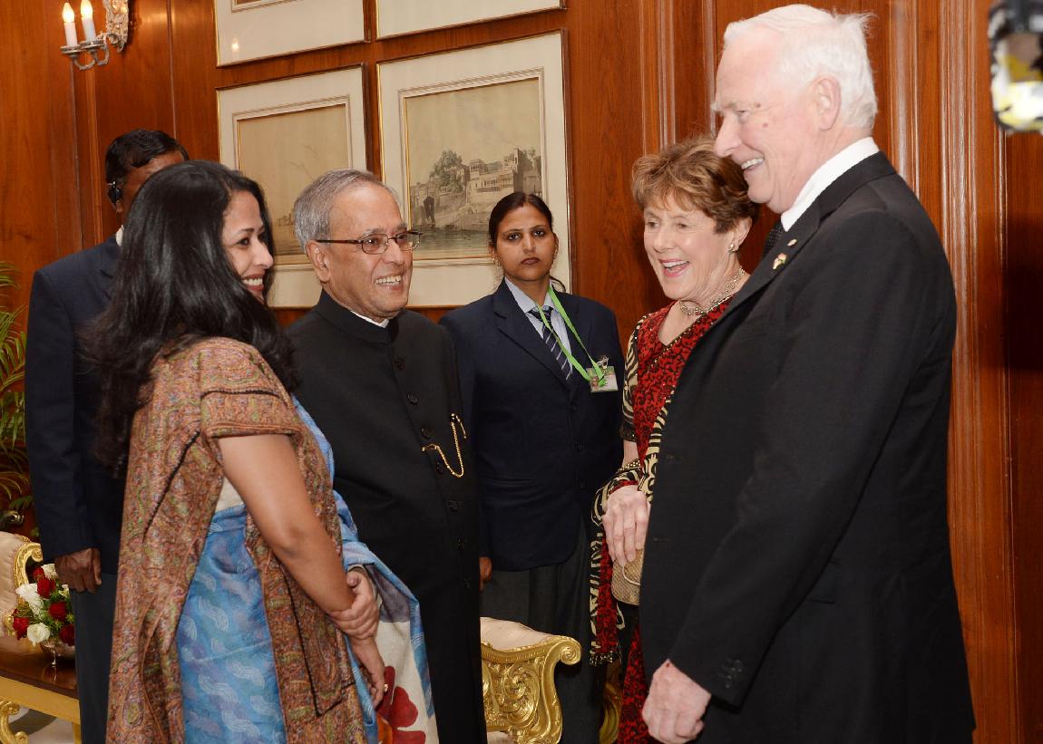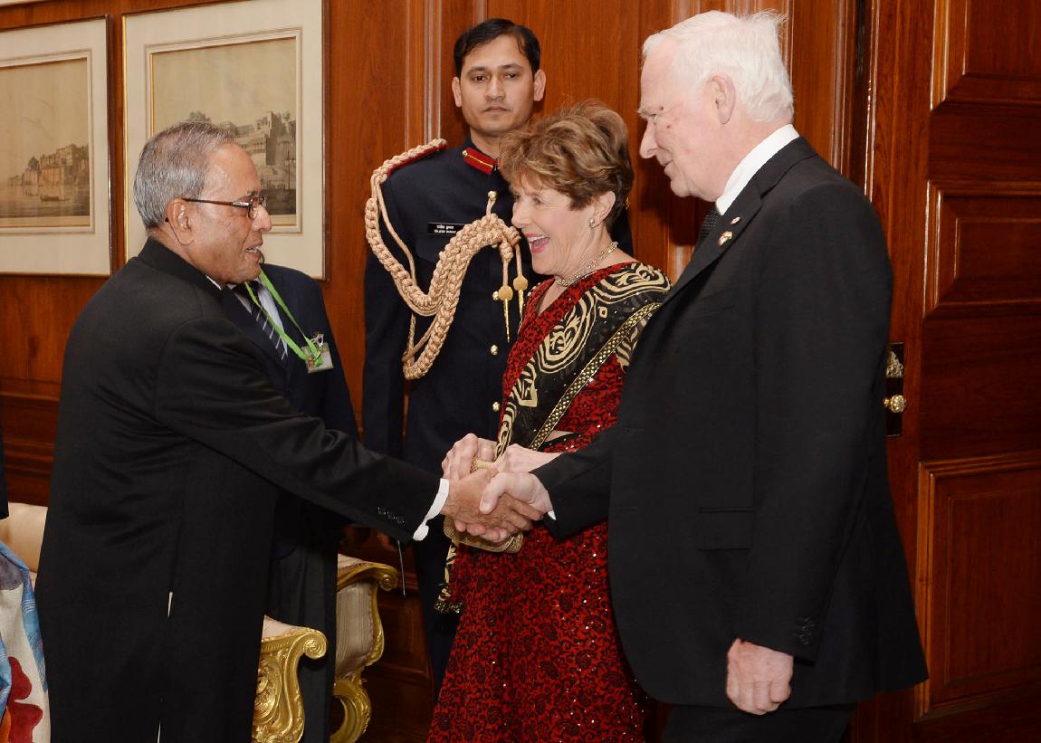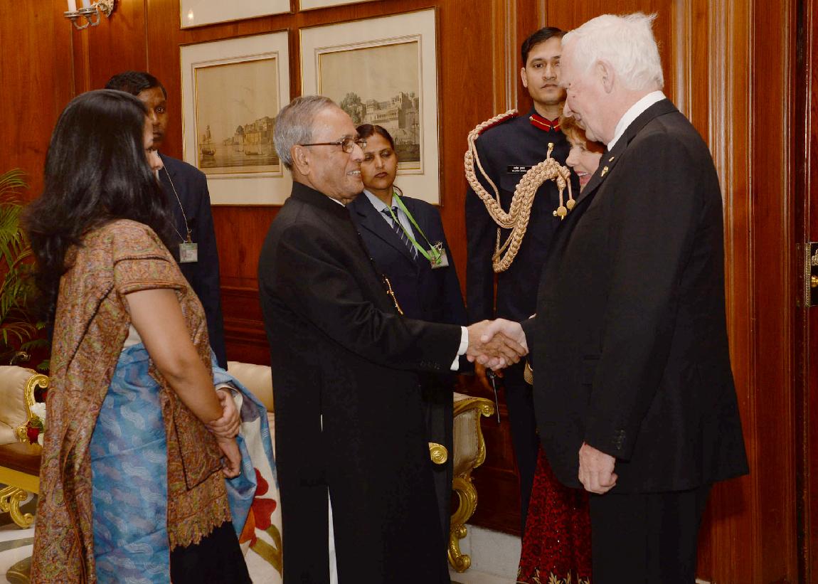 | Caption: | The General of Canada, HE The Rt Hon David Johnston calling on the President of India, Shri Pranab Mukherjee at Rashtrapati Bhavan in New Delhi on Feb 24, 2014 |