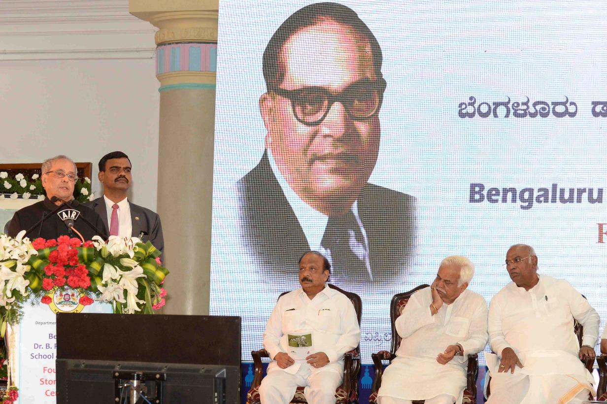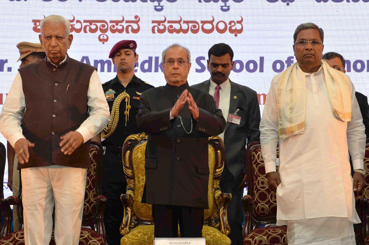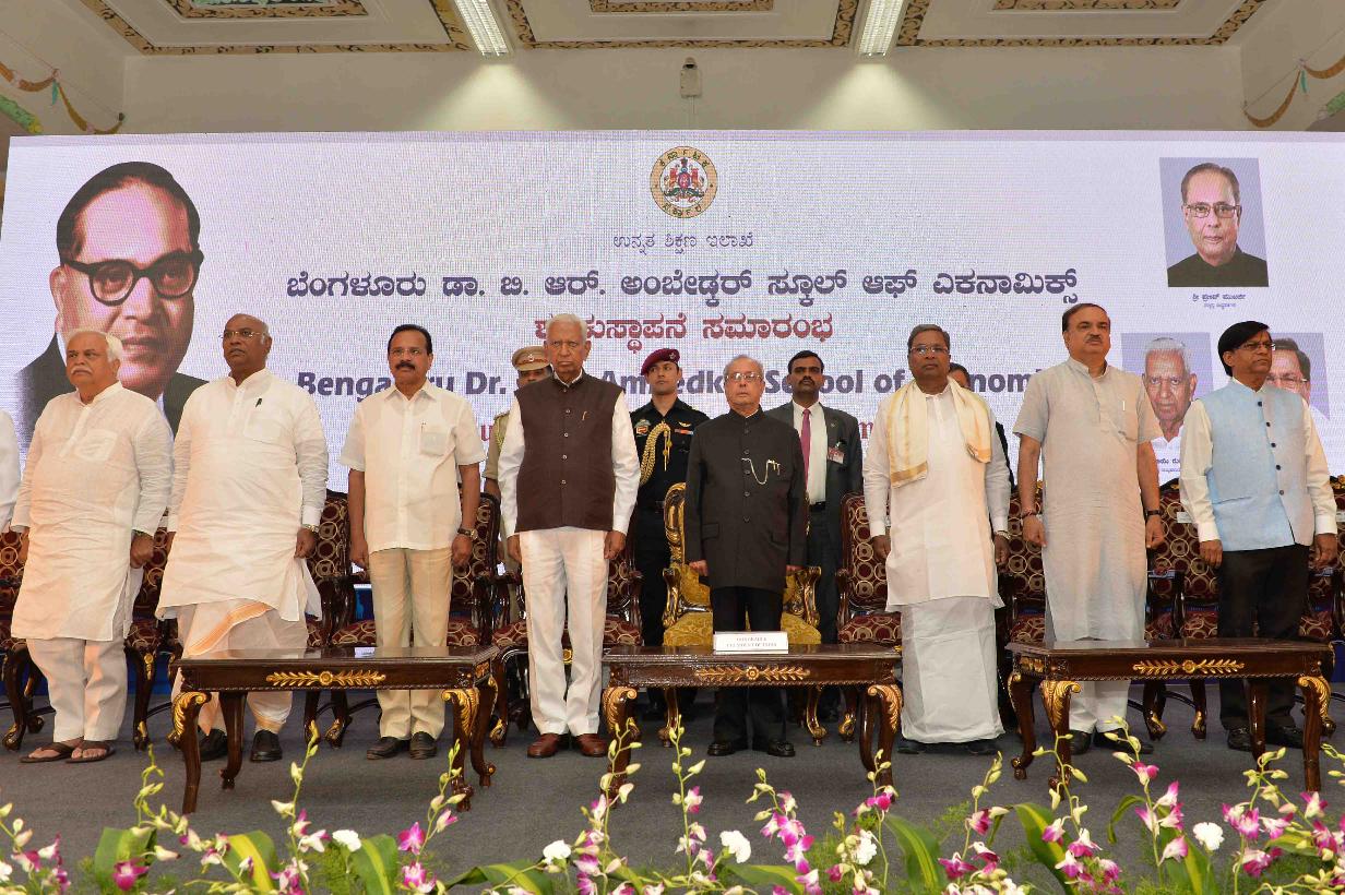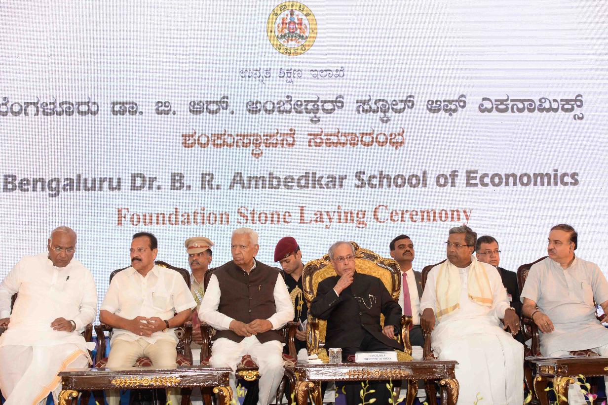 | Caption: | The President of India, Shri Pranab Mukherjee at the foundation stone laying ceremony of Bengaluru Dr. B.R. Ambedkar School of Economics, at Bengaluru, in Karnataka on April 14, 2017. |