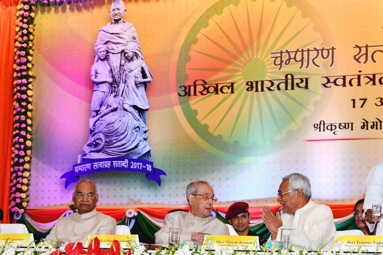 | Caption: | The President of India, Shri Pranab Mukherjee inaugurating the Felicitation Ceremony, organised to honour the Freedom Fighters on the occasion of Centenary of Mahatma Gandhi's Champaran Satyagraha, at Patna, in Bihar on April 17, 2017. |
