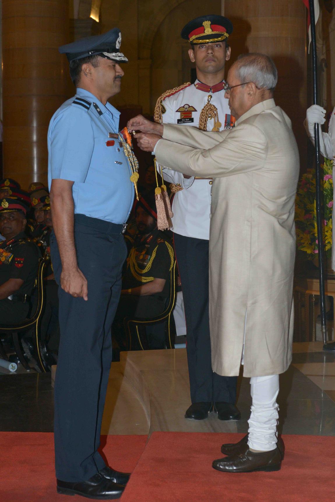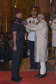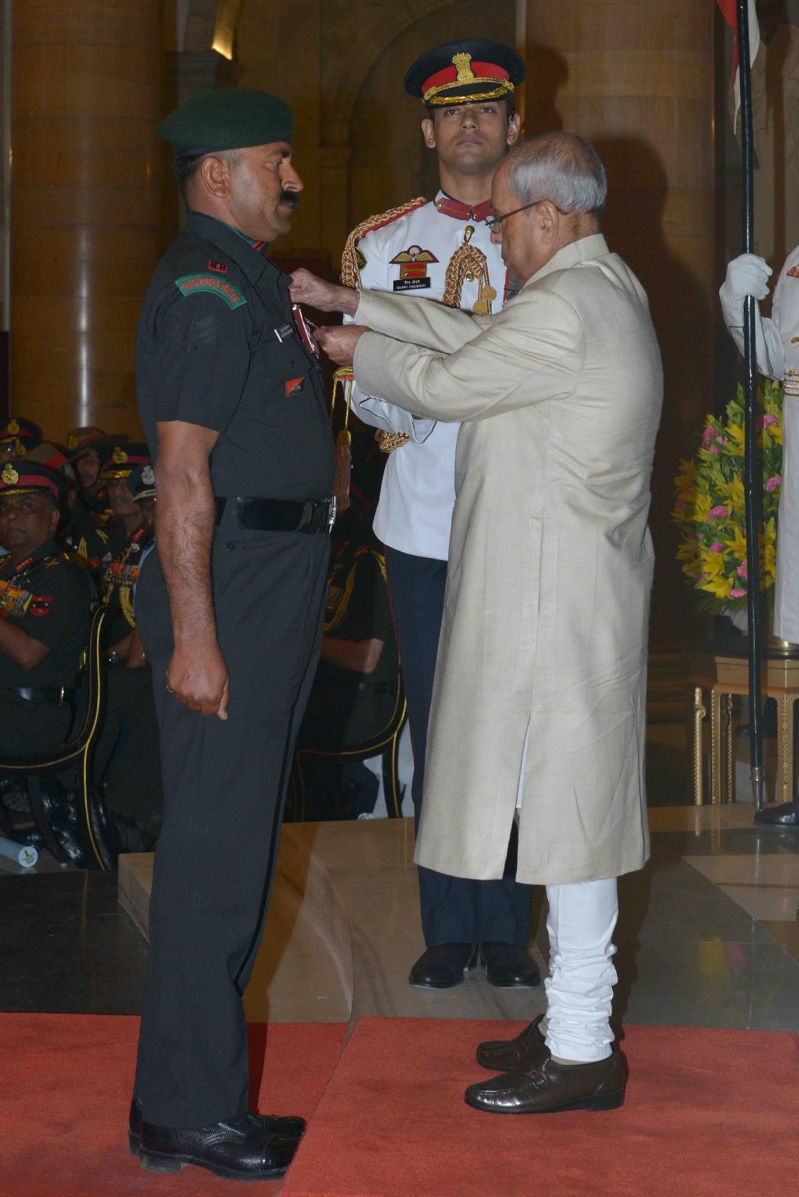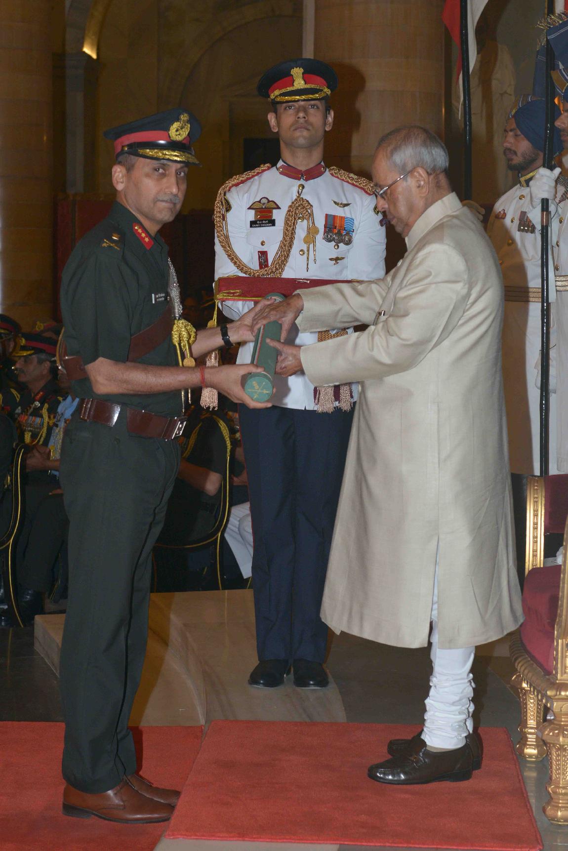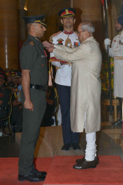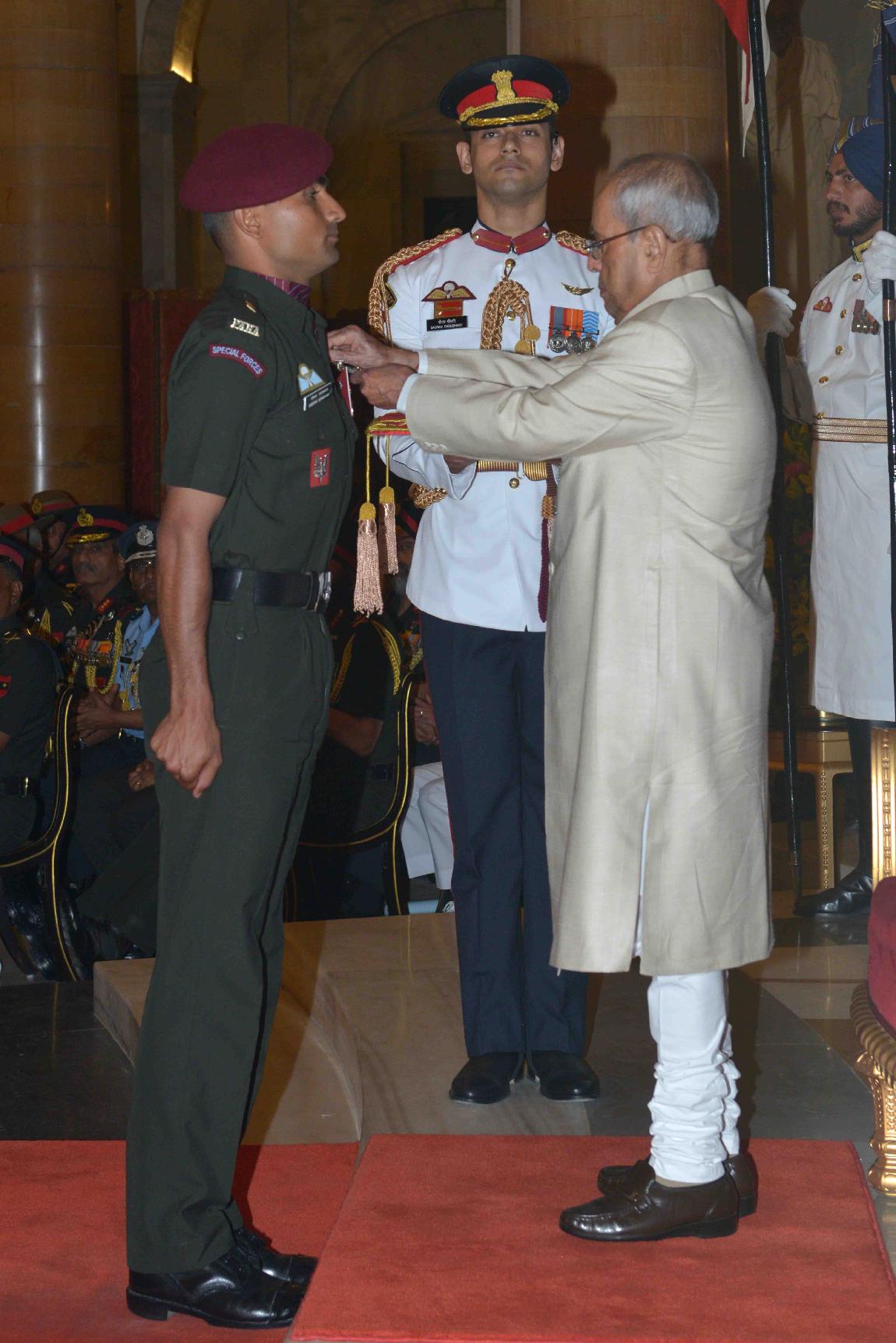 | Caption: | The President of India, Shri Pranab Mukherjee presenting the Gallantry Awards and Distinguished Service Decorations, at a Defence Investiture Ceremony, at Rashtrapati Bhavan on April 06, 2017. |