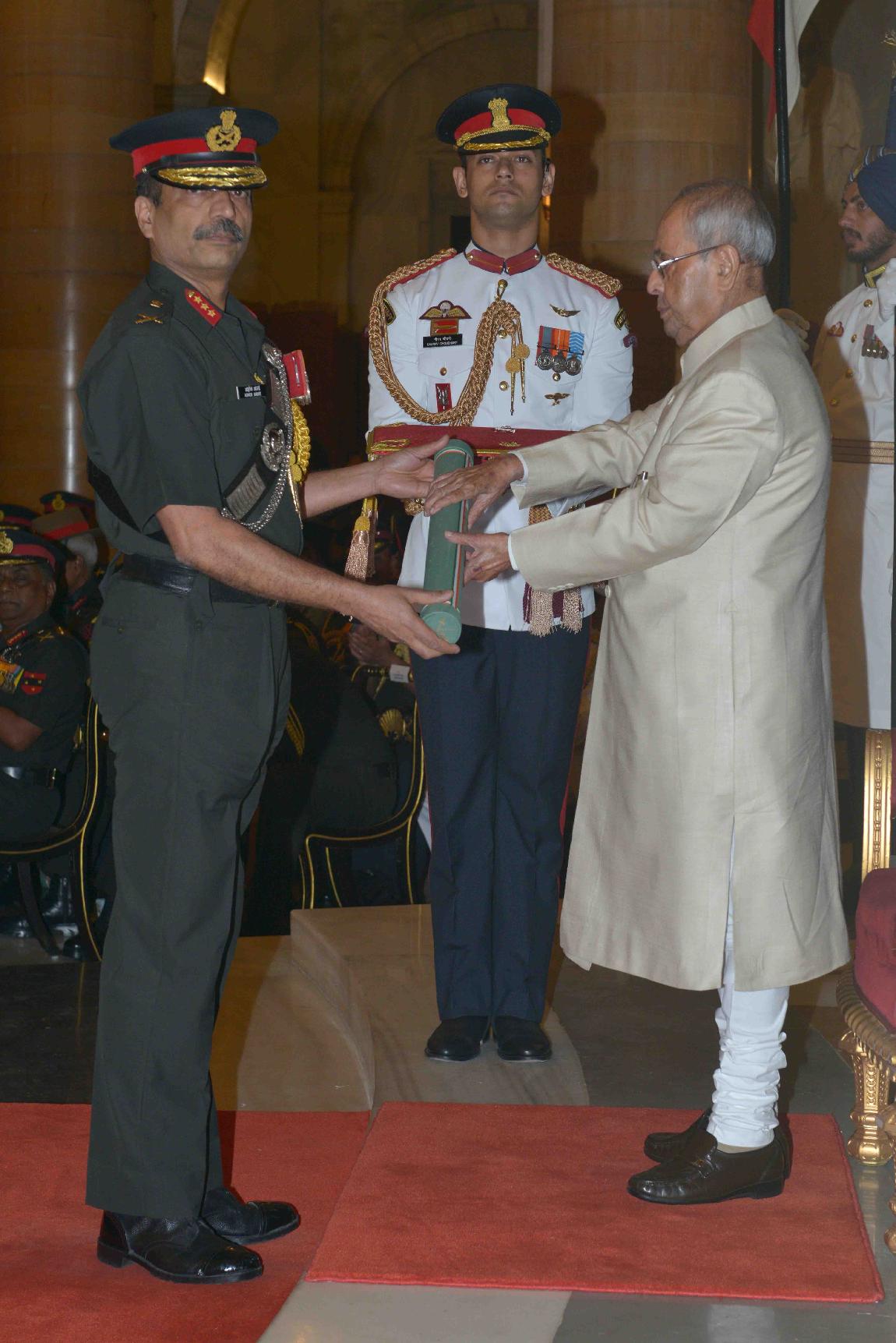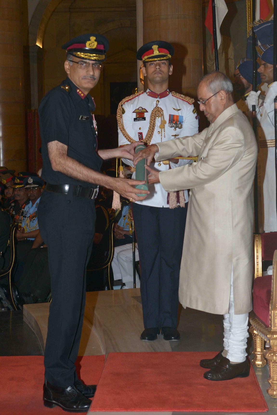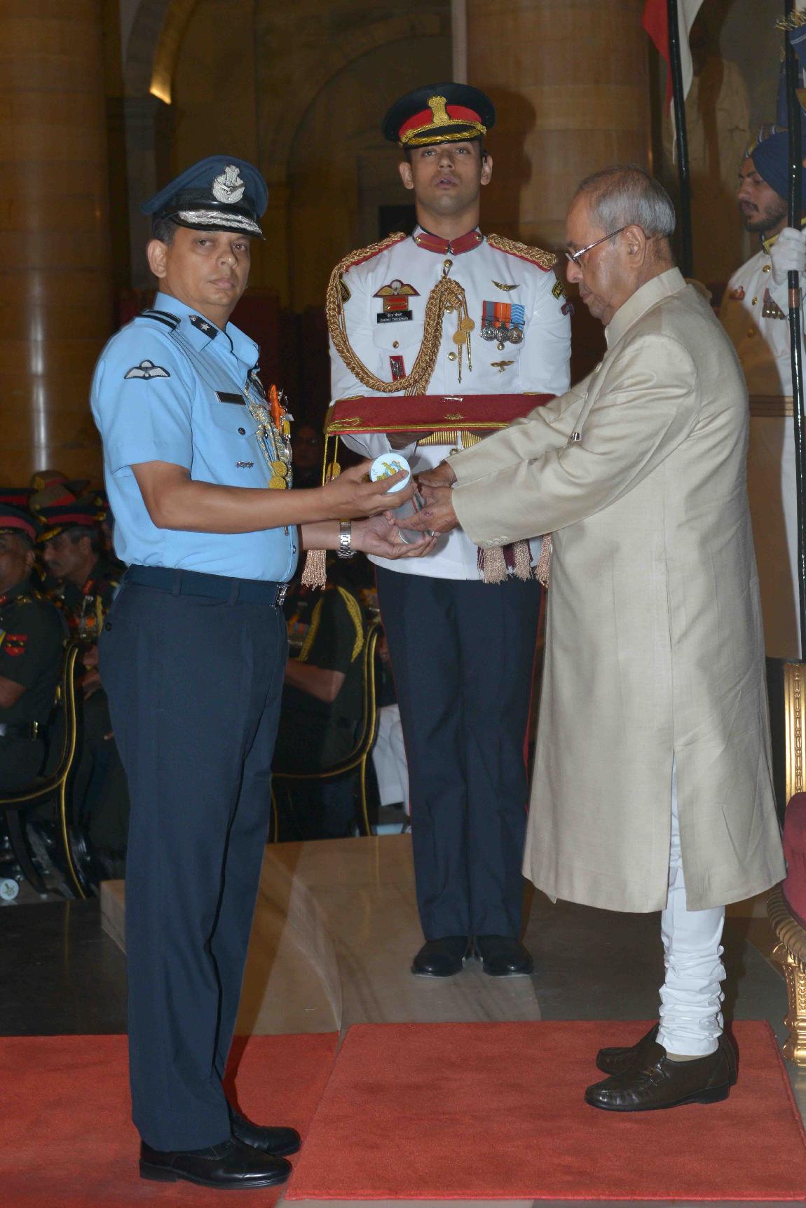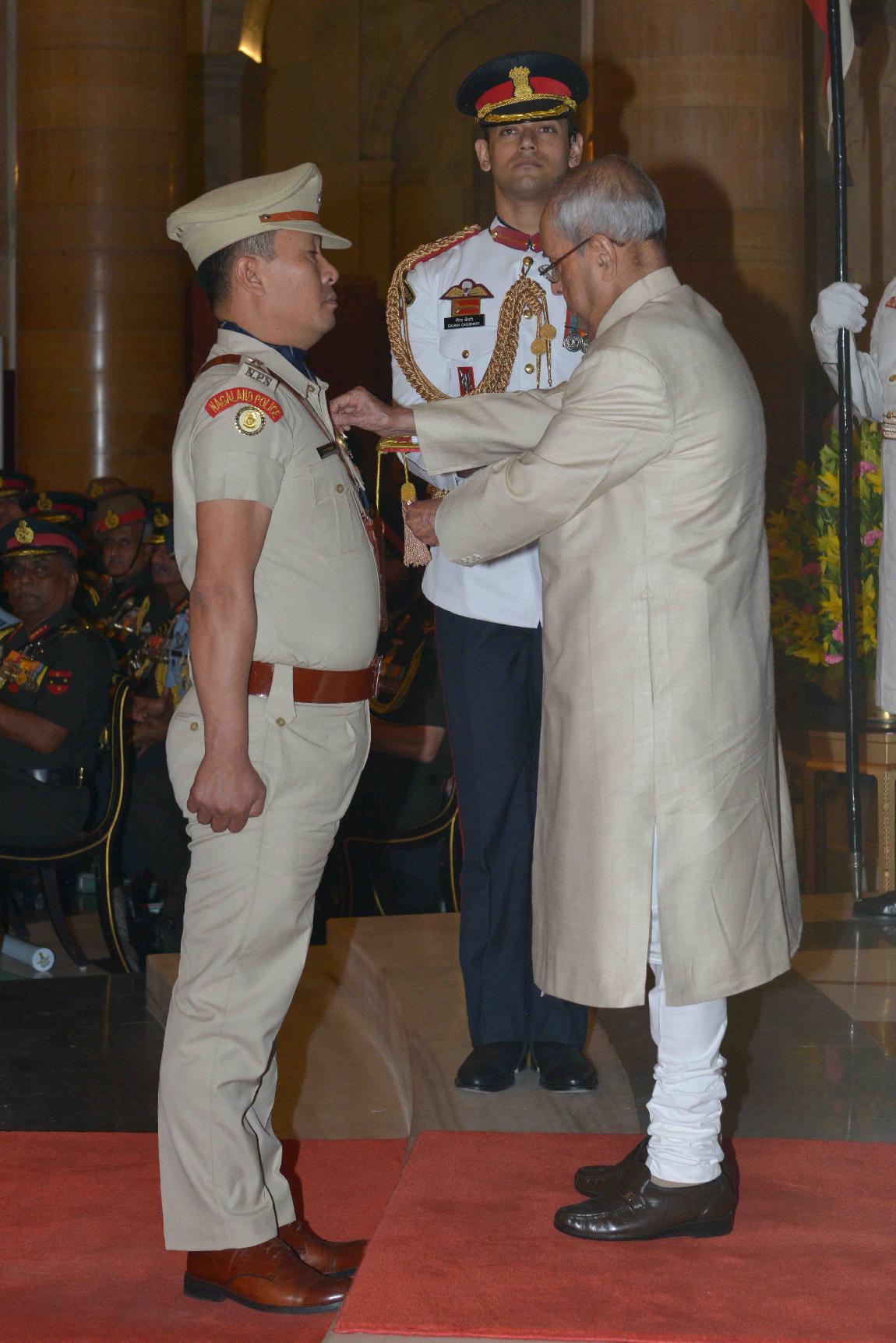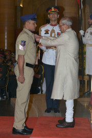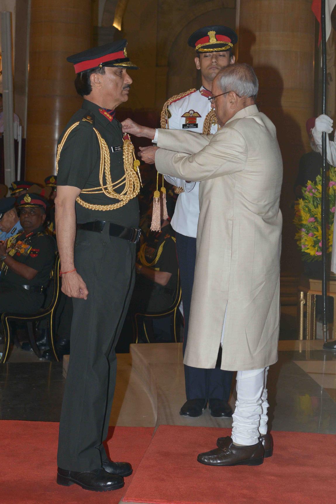 | Caption: | The President of India, Shri Pranab Mukherjee presenting the Gallantry Awards and Distinguished Service Decorations, at a Defence Investiture Ceremony, at Rashtrapati Bhavan on April 06, 2017. |