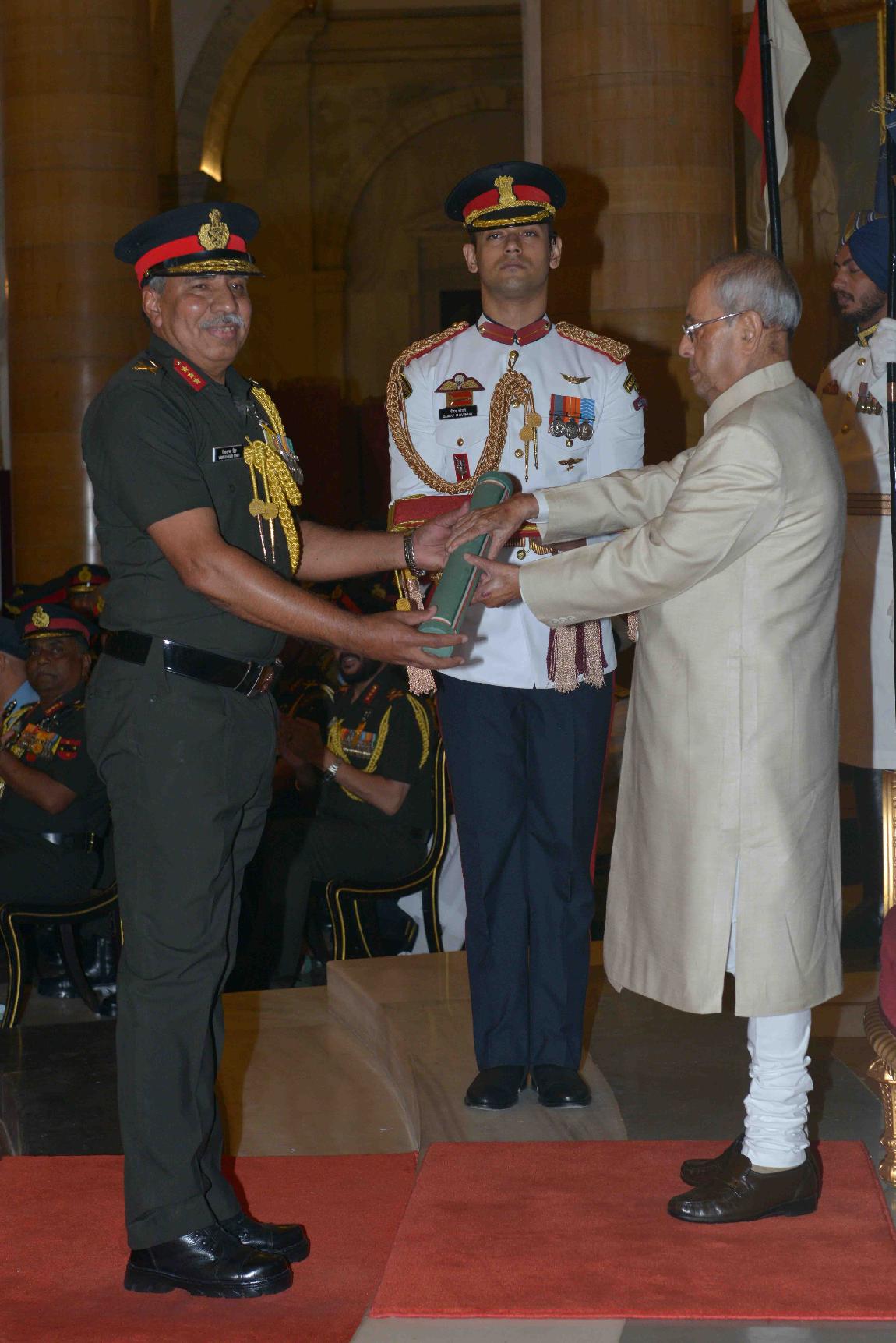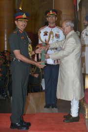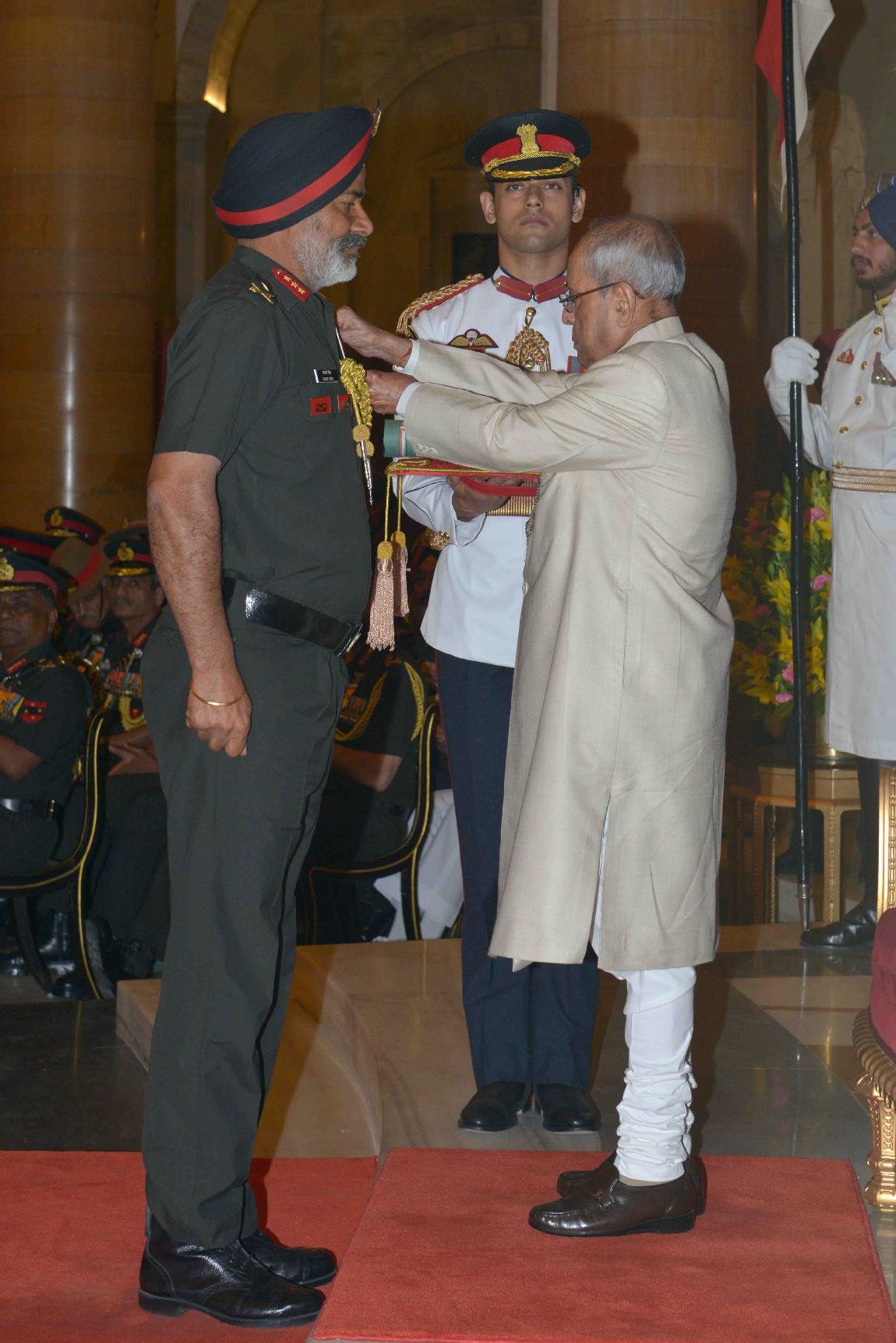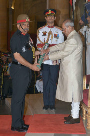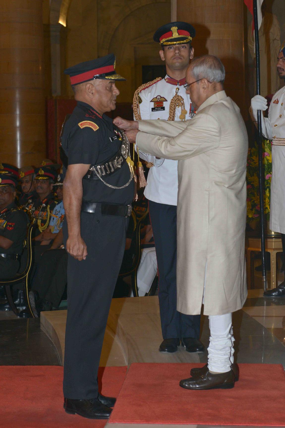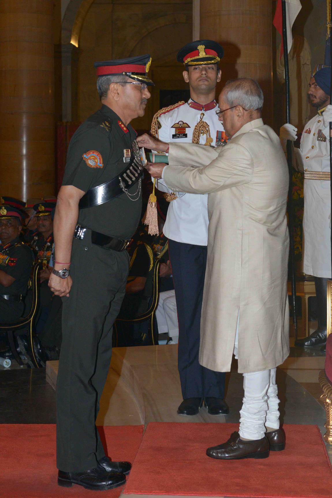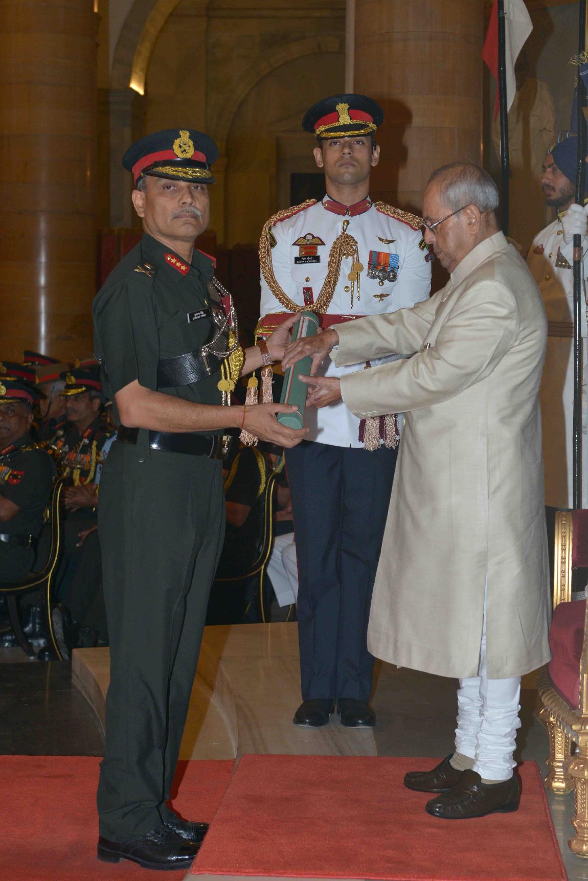 | Caption: | The President of India, Shri Pranab Mukherjee presenting the Gallantry Awards and Distinguished Service Decorations, at a Defence Investiture Ceremony, at Rashtrapati Bhavan on April 06, 2017. |
