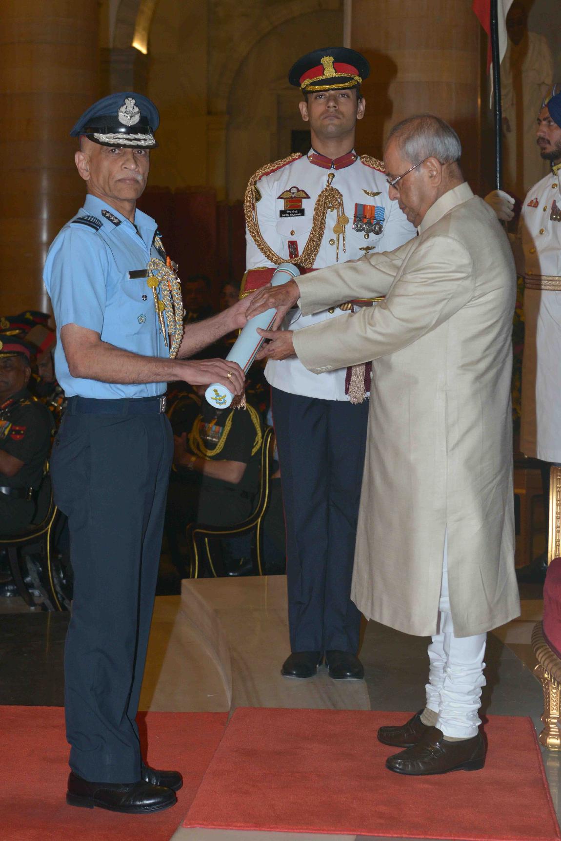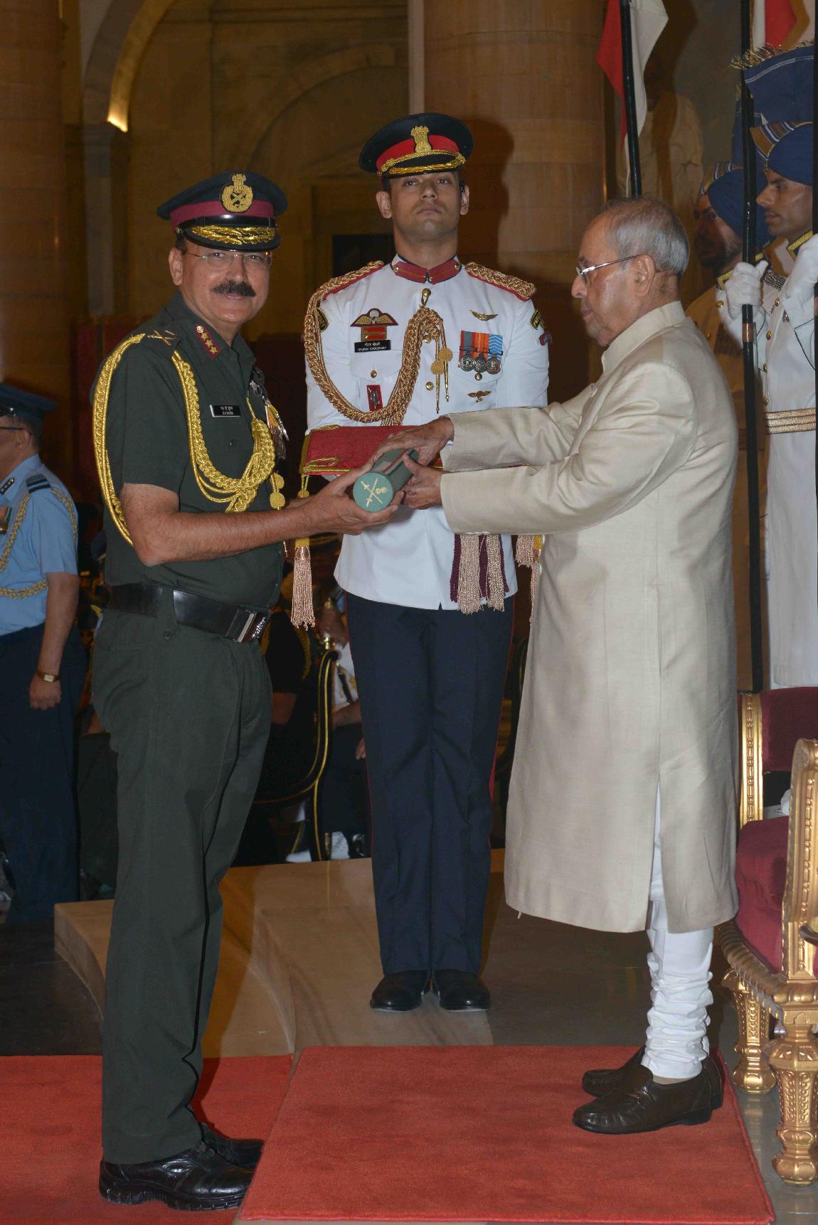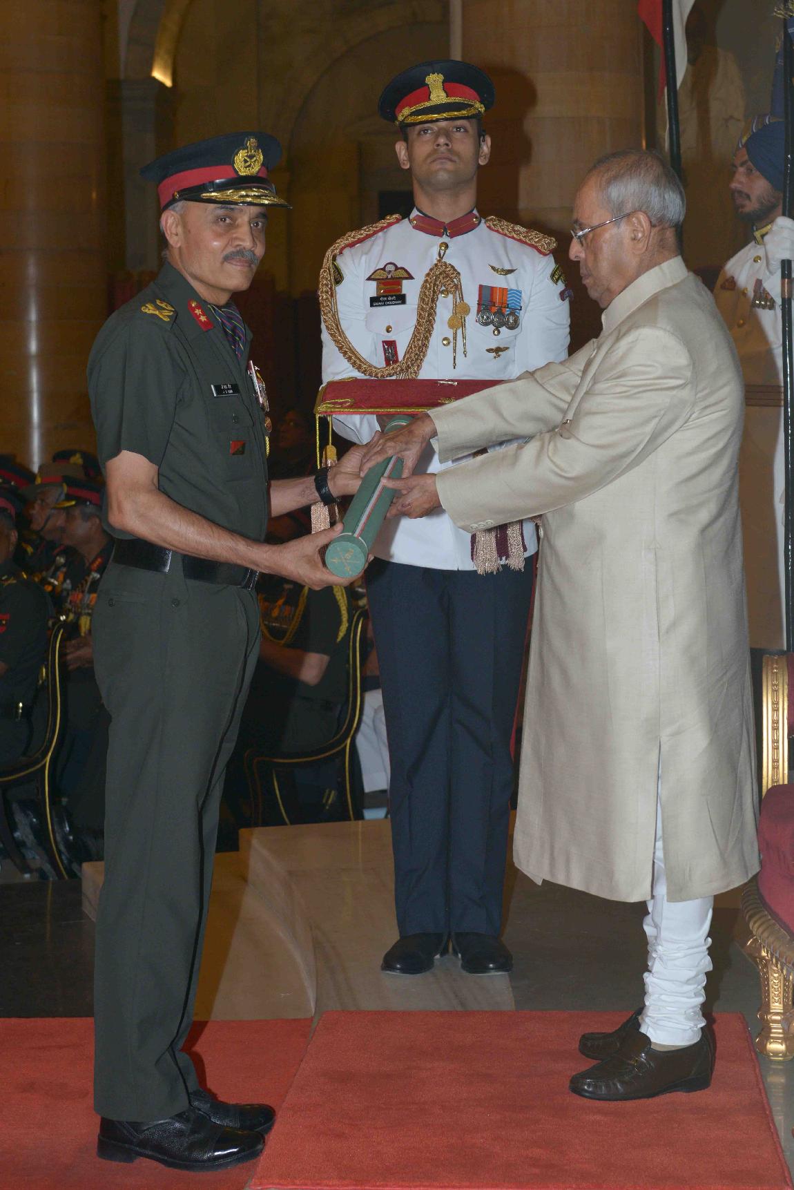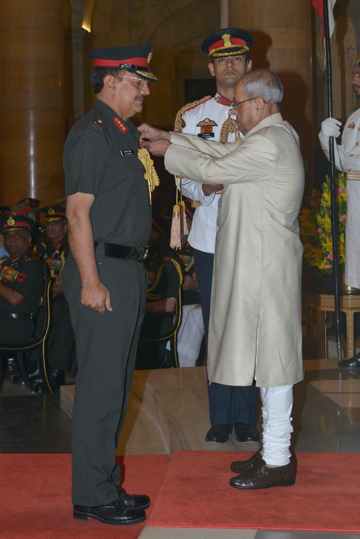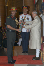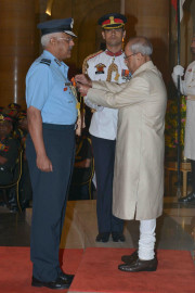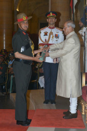 | Caption: | The President of India, Shri Pranab Mukherjee presenting the Gallantry Awards and Distinguished Service Decorations, at a Defence Investiture Ceremony, at Rashtrapati Bhavan on April 06, 2017. |