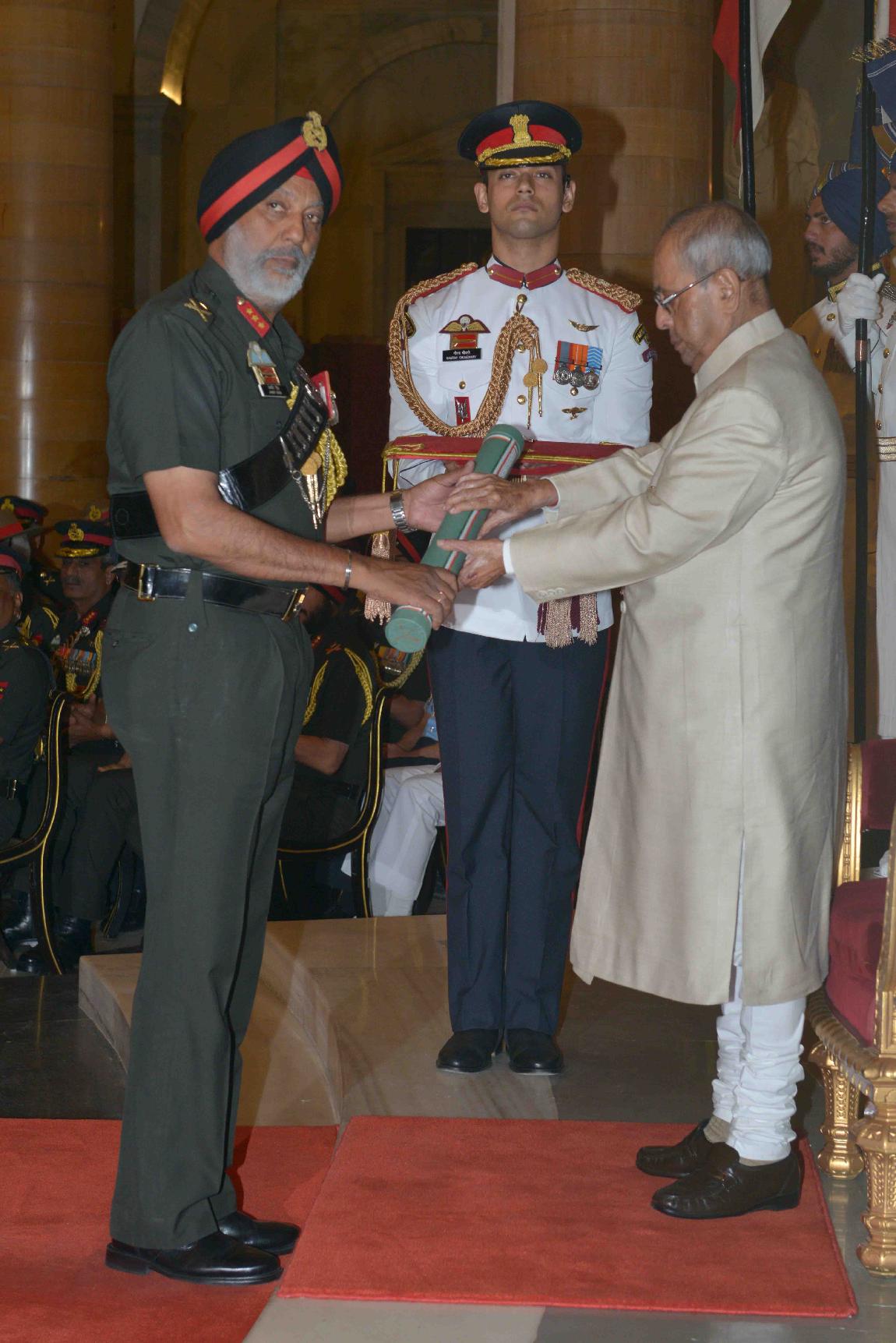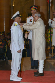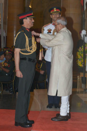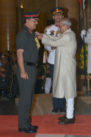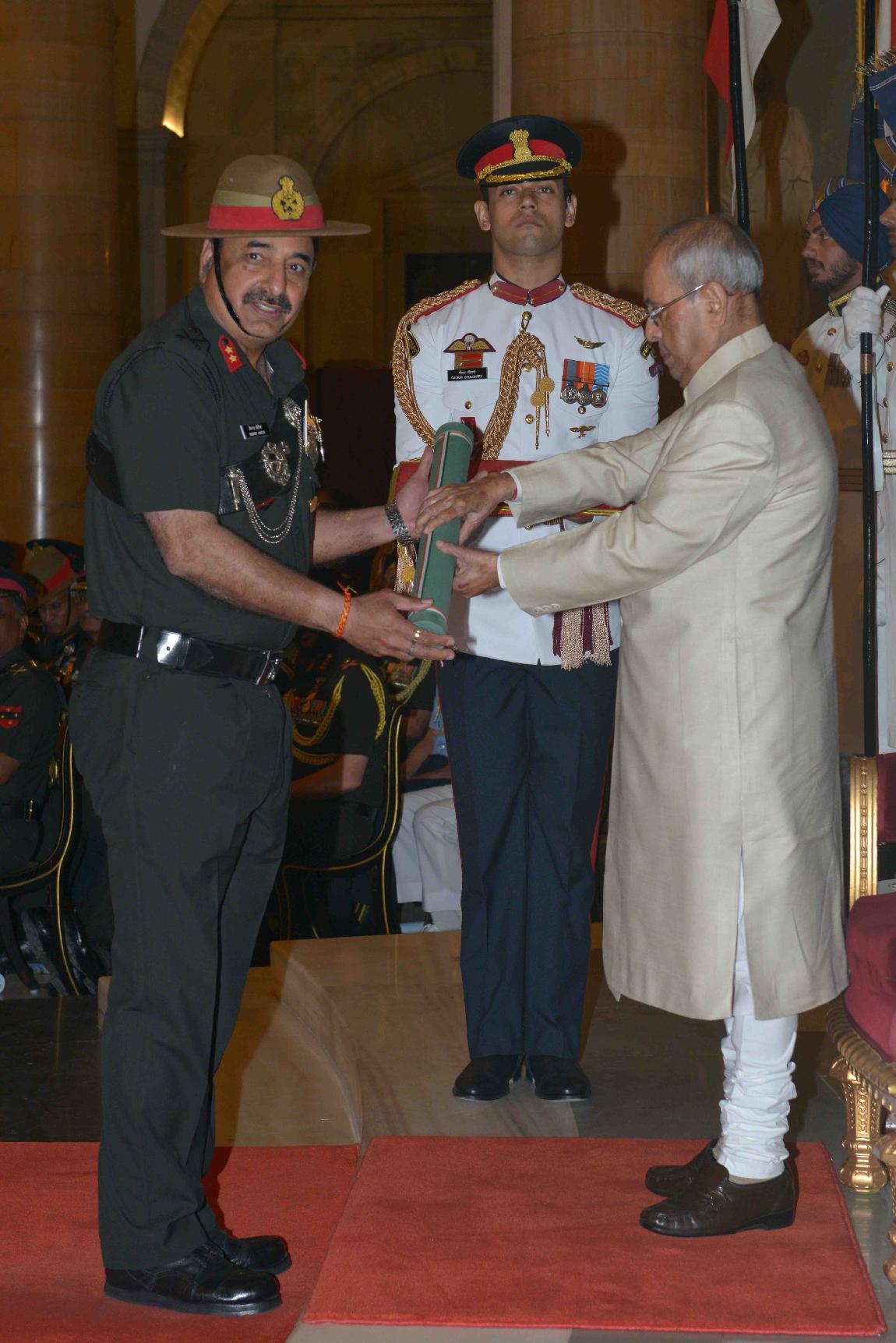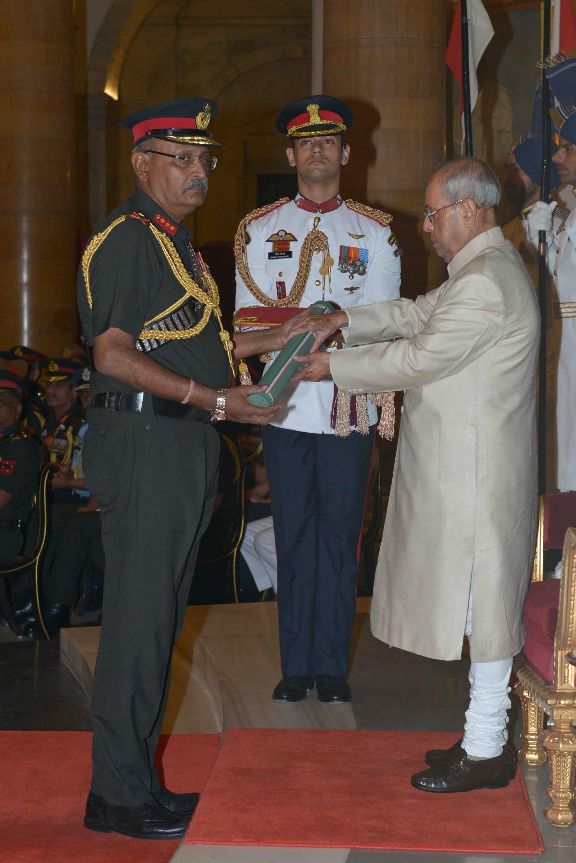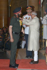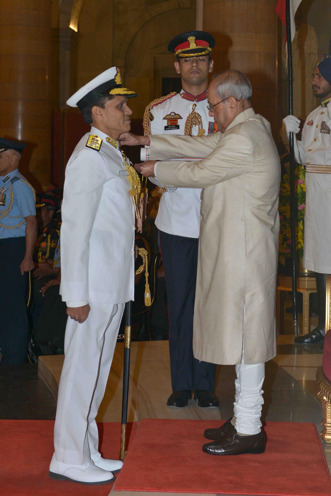 | Caption: | The President of India, Shri Pranab Mukherjee presenting the Gallantry Awards and Distinguished Service Decorations, at a Defence Investiture Ceremony, at Rashtrapati Bhavan on April 06, 2017. |