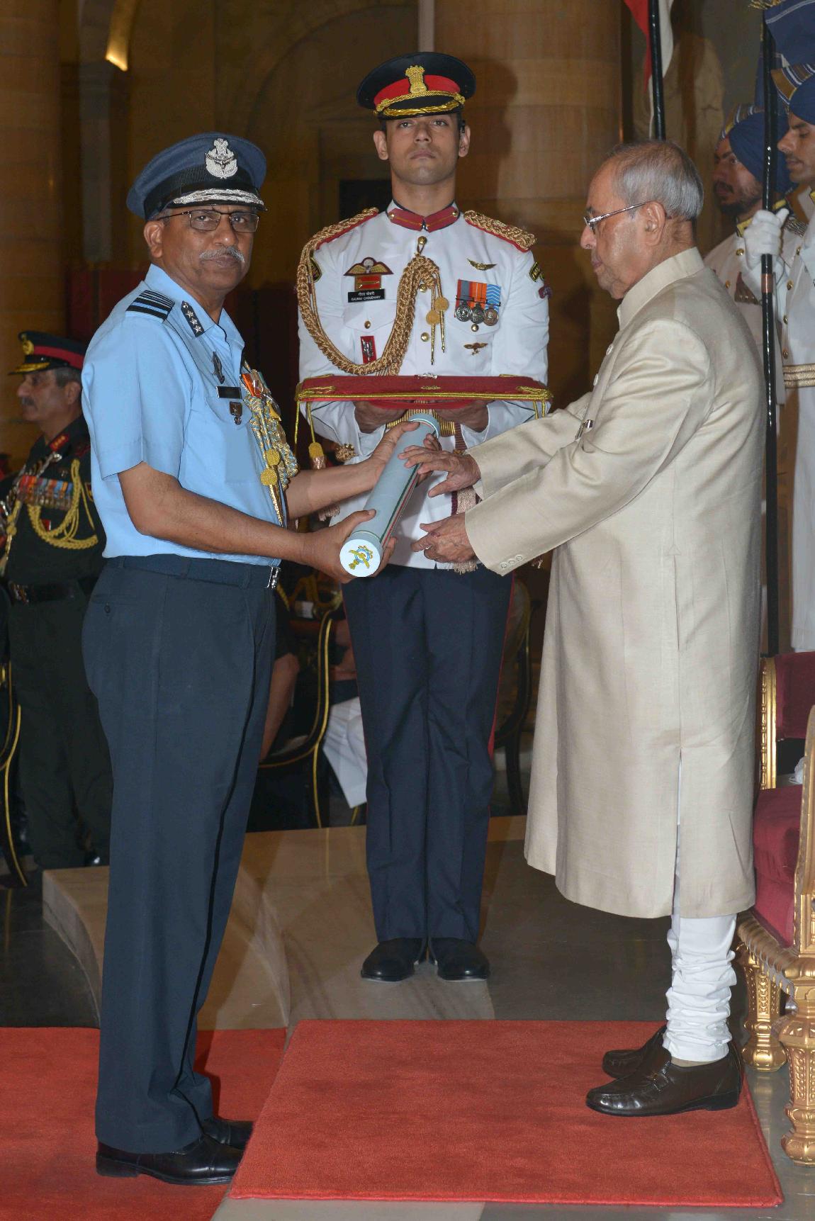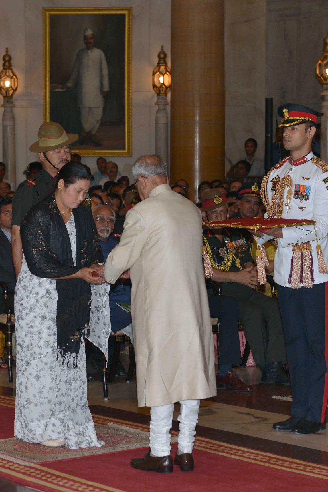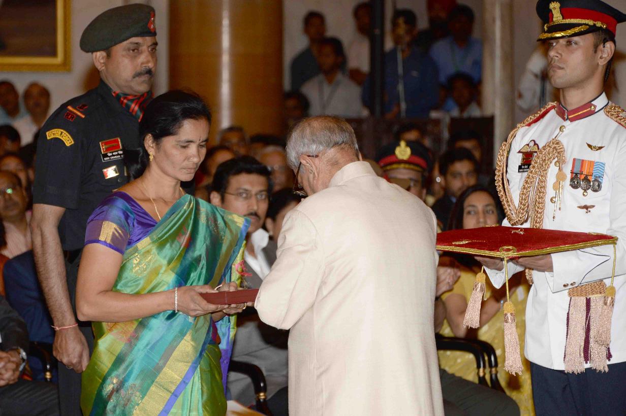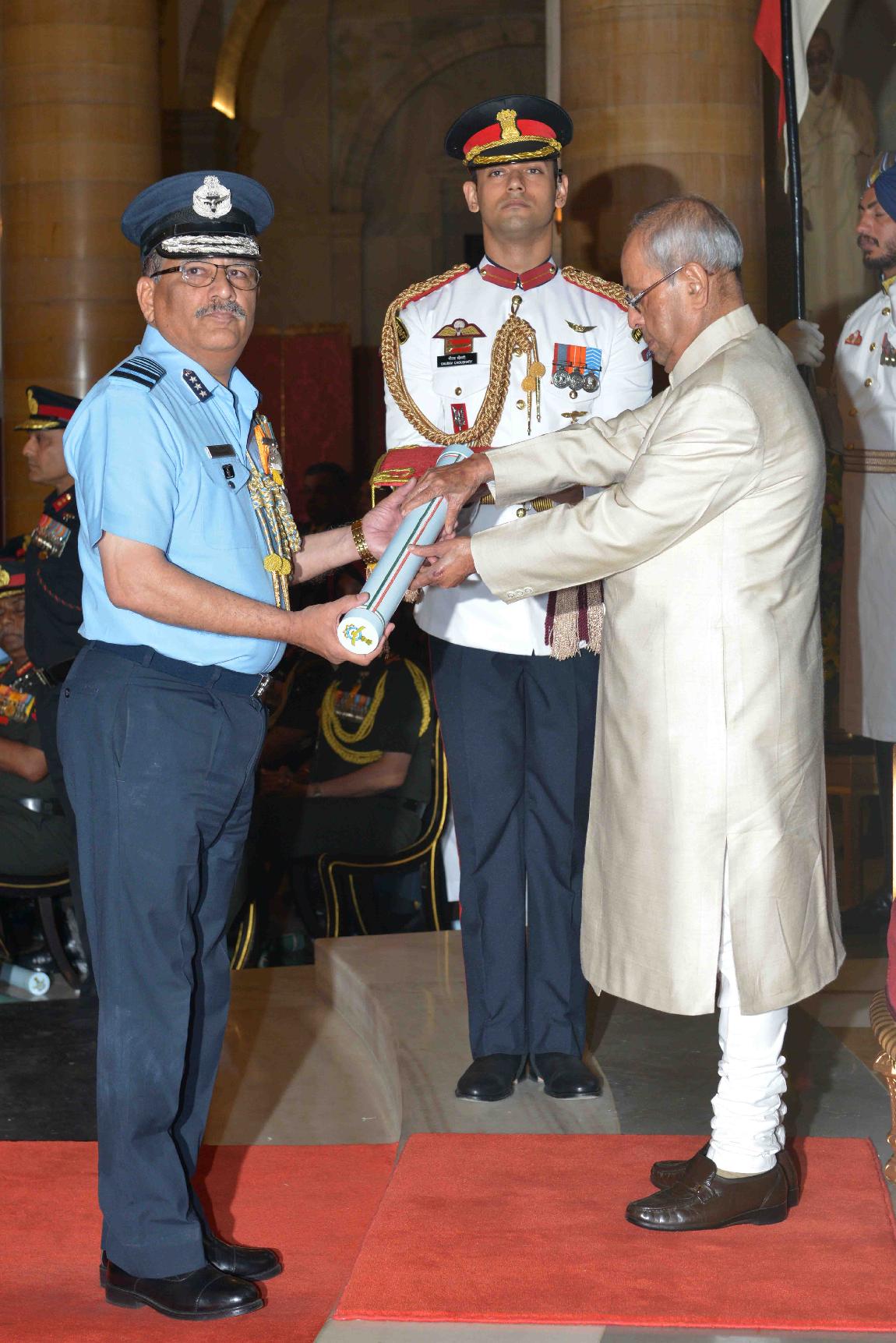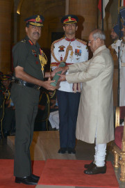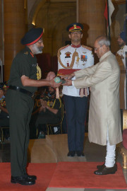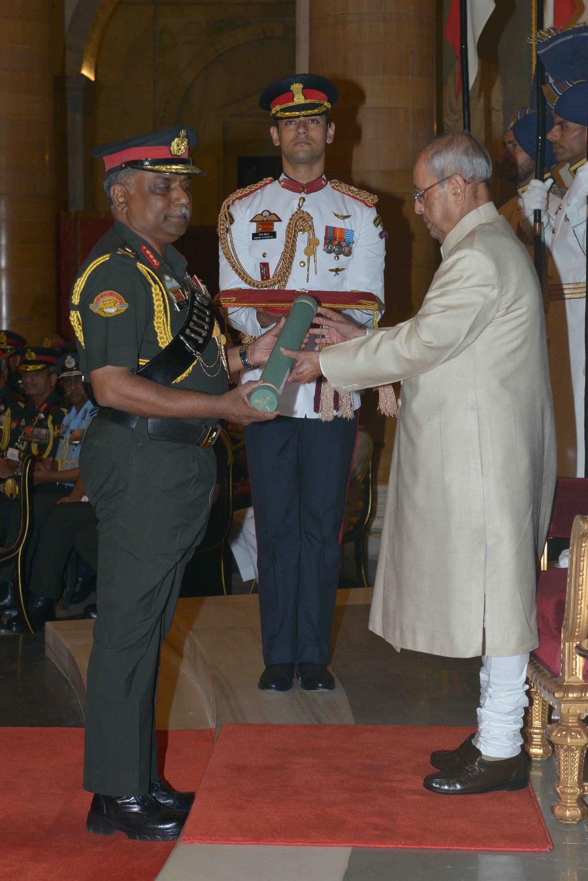 | Caption: | The President of India, Shri Pranab Mukherjee presenting the Gallantry Awards and Distinguished Service Decorations, at a Defence Investiture Ceremony, at Rashtrapati Bhavan on April 06, 2017. |