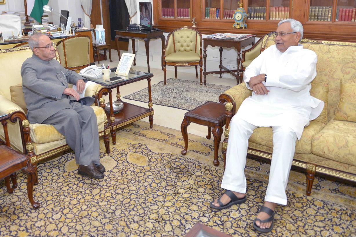| Caption: | The President of India, Shri Pranab Mukherjee meeting with Shri Nitish Kumar, Chief Minister of Bihar, at Rashtrapati Bhavan on May 08, 2017. |