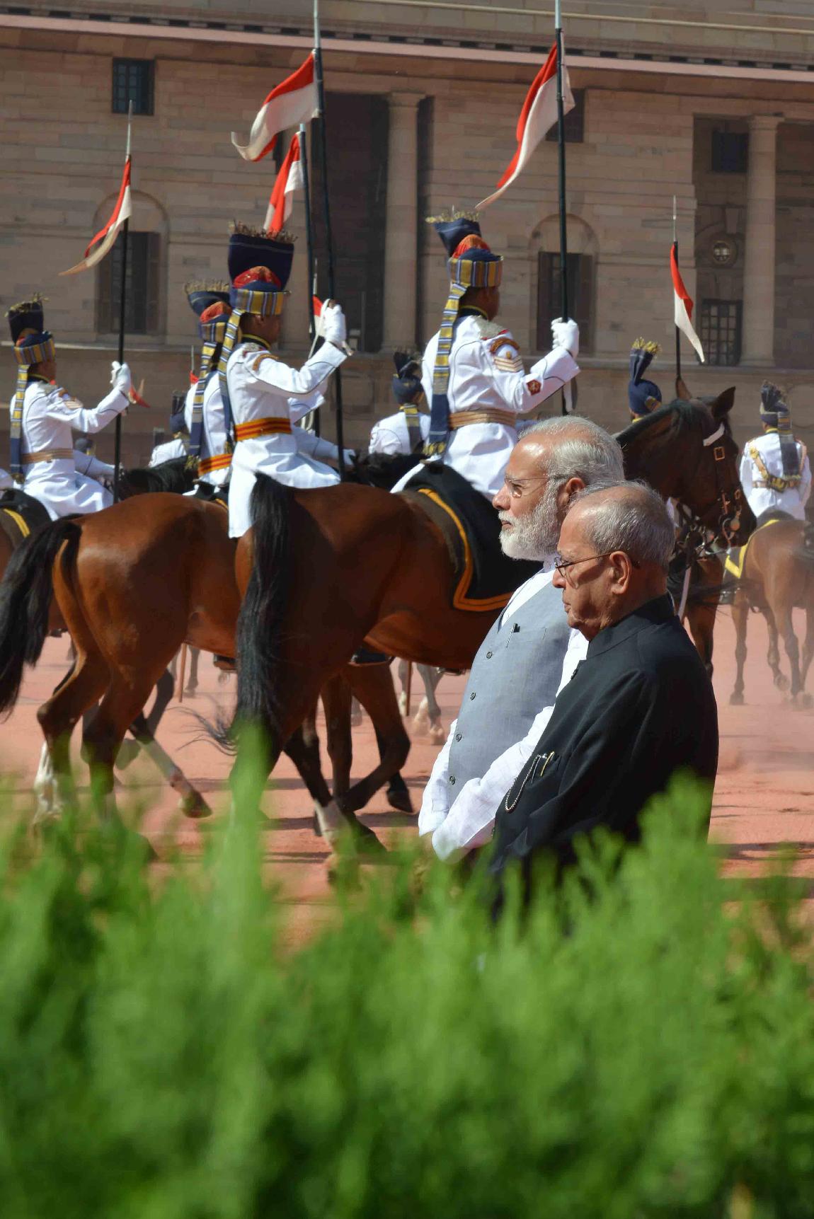 | Caption: | The President of India, Shri Pranab Mukherjee during the Ceremonial Reception of the President of Republic of Turkey, H.E. Mr. Recep Tayyip Erdogan, at the Forecourt of Rashtrapati Bhavan on May 01, 2017. |
