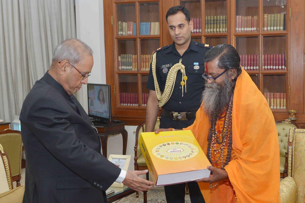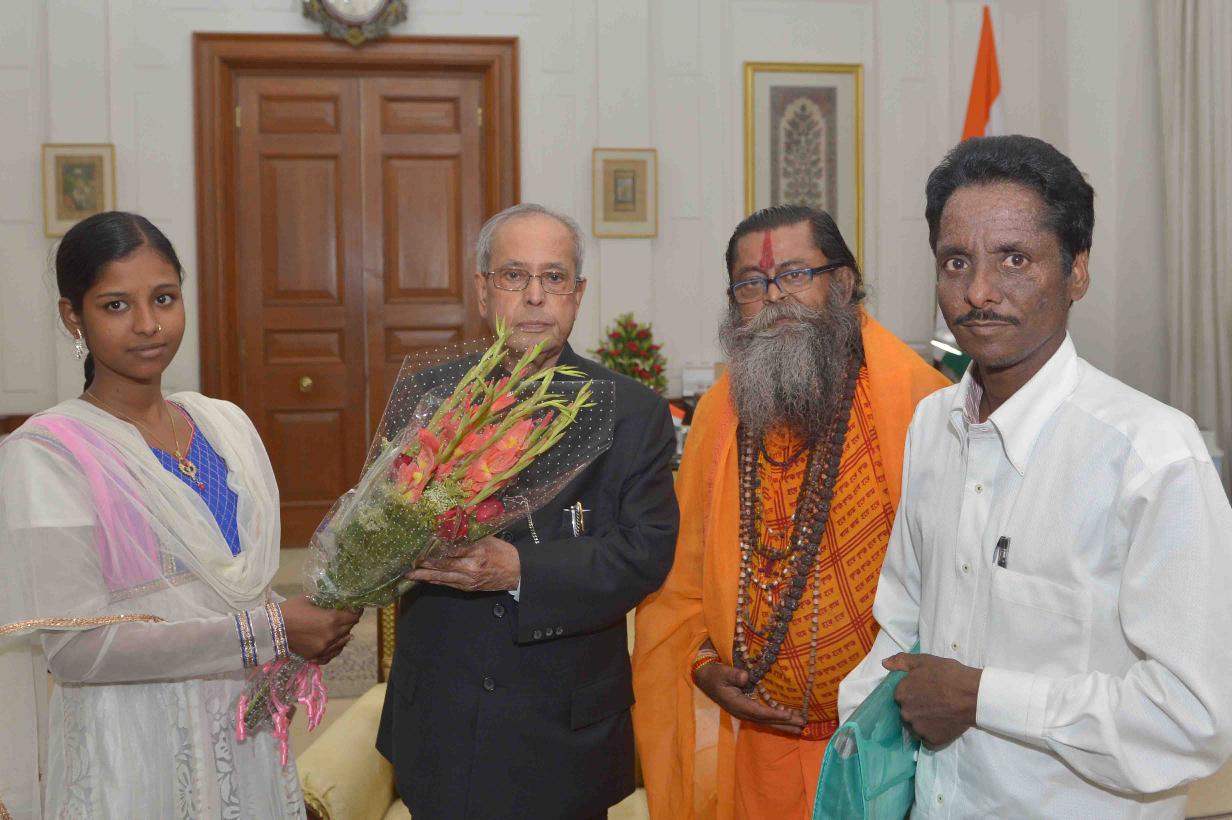 | Caption: | The President of India, Shri Pranab Mukherjee meeting with Swami Shiba Prasad Duttaji Maharaj, Secretary with others from Thalassemia Sebashram-O-Bharat Welfare Society, Kolkata, at Rashtrapati Bhavan on May 09, 2017. |