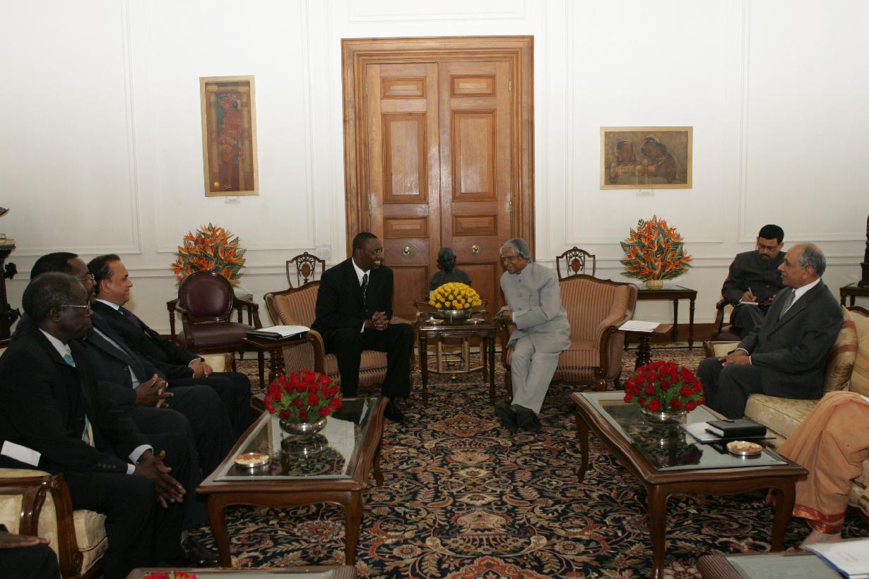 | Caption: | The Delegation to India-COMESA Ministerial Summit led by Hon'ble Protais Mitali, Minister of Commerce, Industry, Investment Promotion, Tourism and Cooperatives of the Republic of Rwanda and Chairman of COMESA Council of Ministers calling on the President of India, Dr A P J Abdul Kalam at the Morning Room of Rashtrapati Bhavan in New Delhi on Oct 05, 2006 |