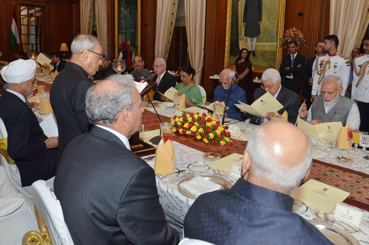| Caption: | The President of India, Shri Pranab Mukherjee addressing at the Banquet, hosted in honour of the President of the State of Palestine, H.E. Mr. Mahmoud Abbas, at Rashtrapati Bhavan on May 16, 2017. |