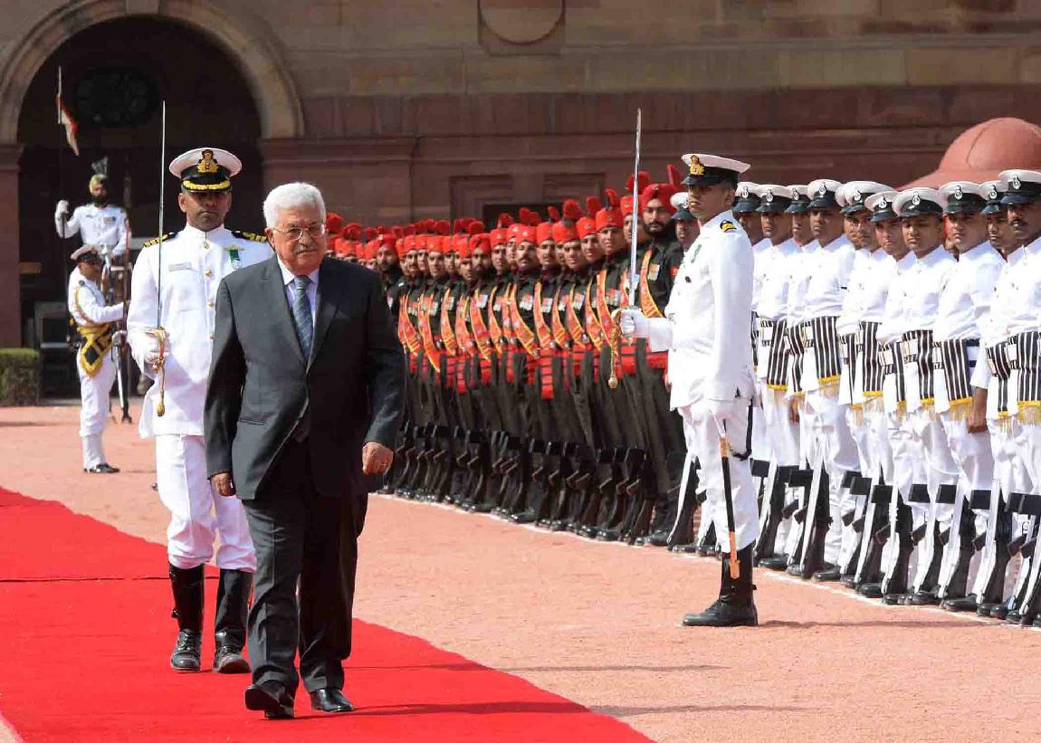 | Caption: | The President of India, Shri Pranab Mukherjee during the Ceremonial Reception of HE Mr. Mahmoud Abbas, President of the State of Palestine, at Forecourt of Rashtrapati Bhavan on May 16, 2017. |