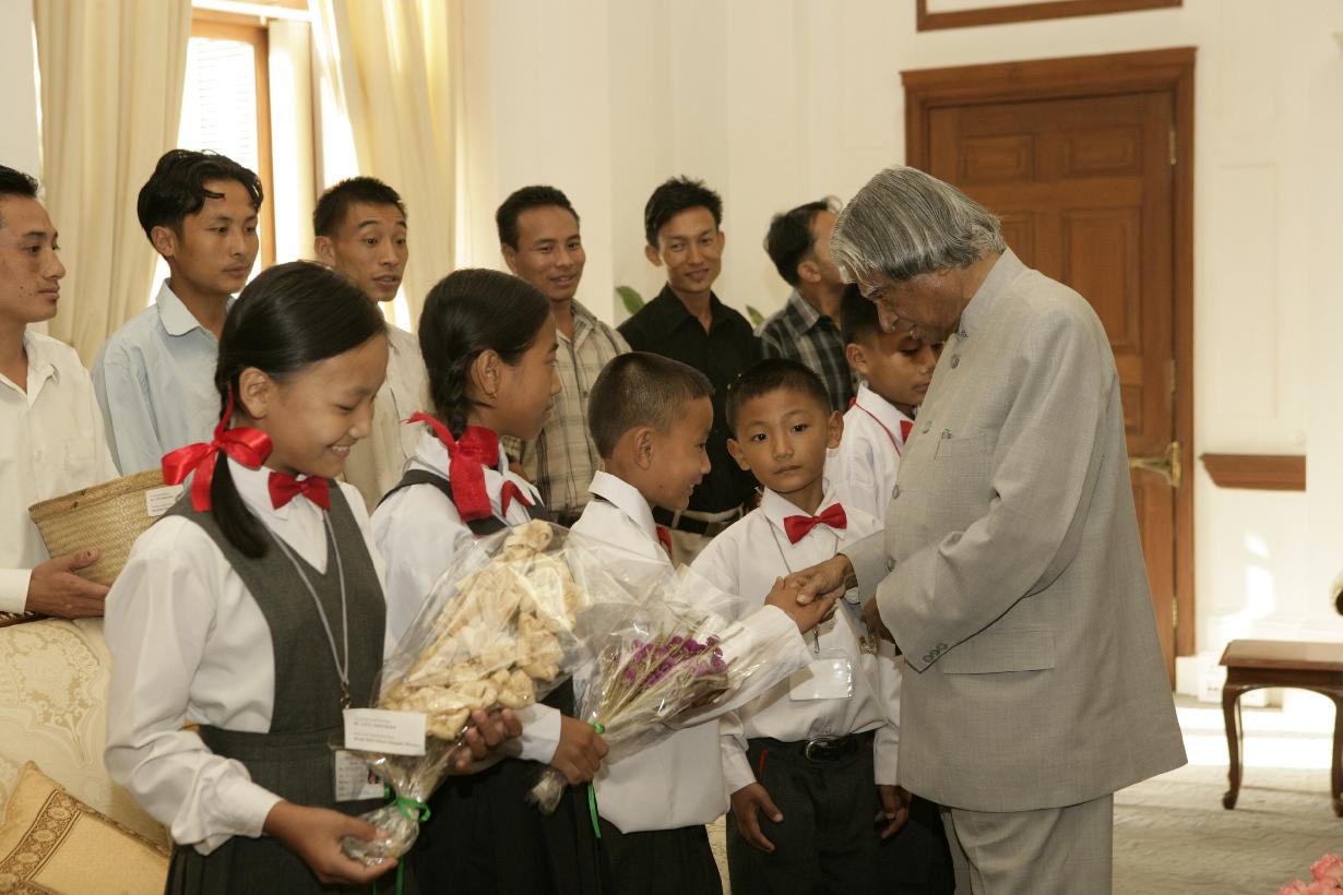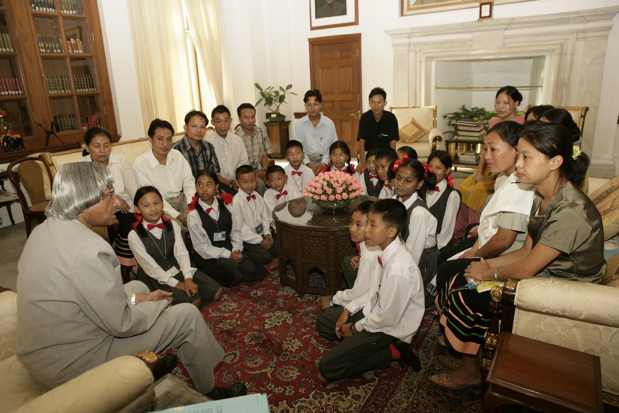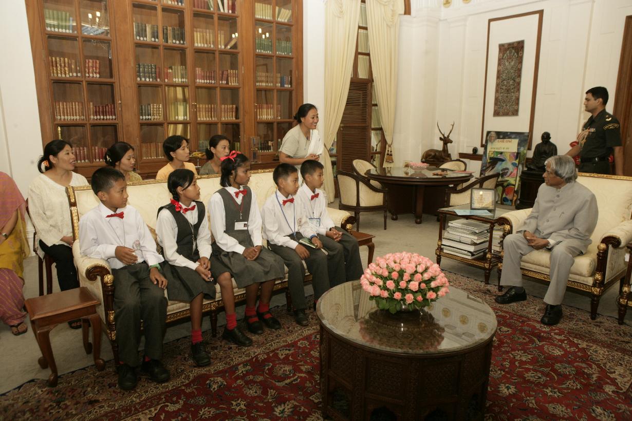 | Caption: | The Students from Brook Dale School, Senapati District, Manipur calling on the President of India, Dr A P J Abdul Kalam at Rashtrapati Bhavan in New Delhi on Oct 05, 2006 |