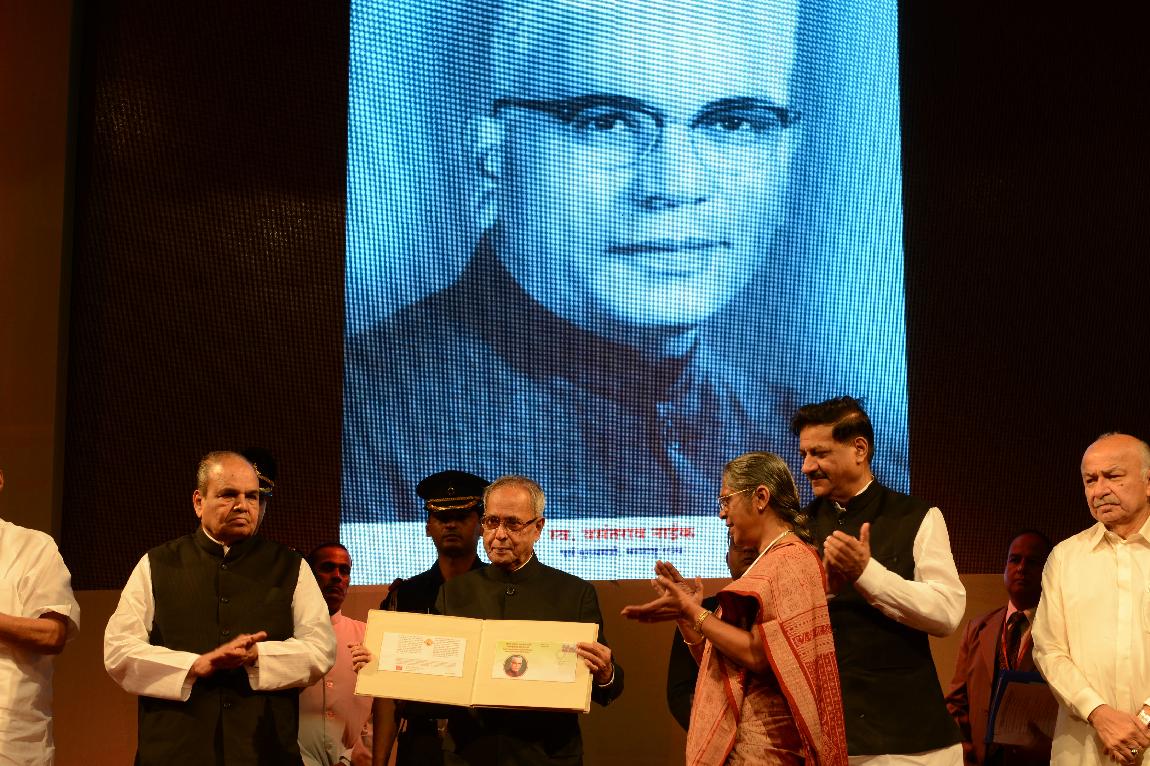 | Caption: | The President of India Shri Pranab Mukherjee Attending Ceremony of the Birth Centenary Celebration of Late Shri Vasantrao Naik on July 01, 2013 |