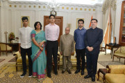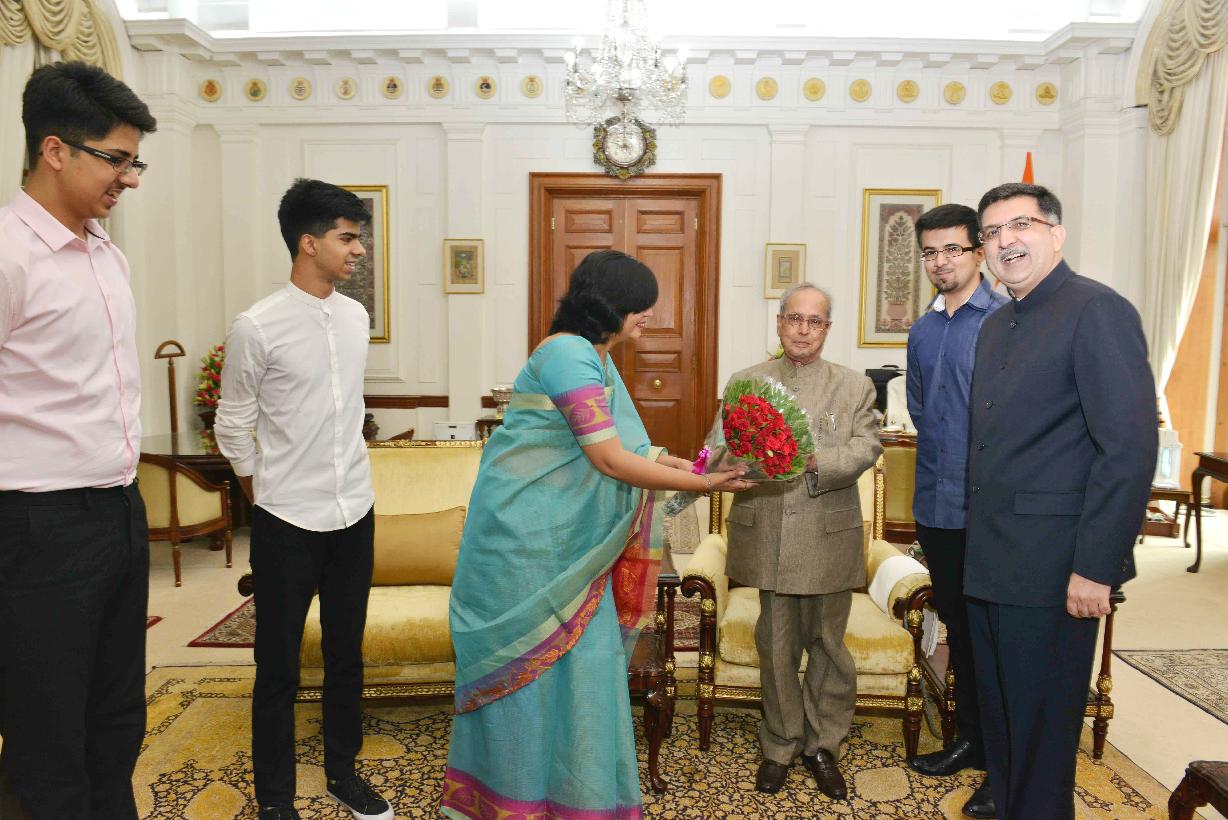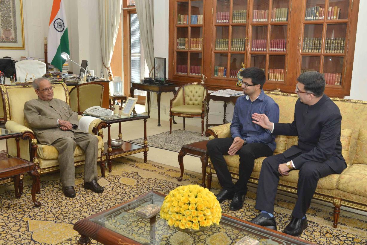 | Caption: | The President of India, Shri Pranab Mukherjee meeting with Smt. & Shri Siddharth Sharma, IFA, Rashtrapati Bhavan alongwith their sons, at Rashtrapati Bhavan on May 20, 2017. |