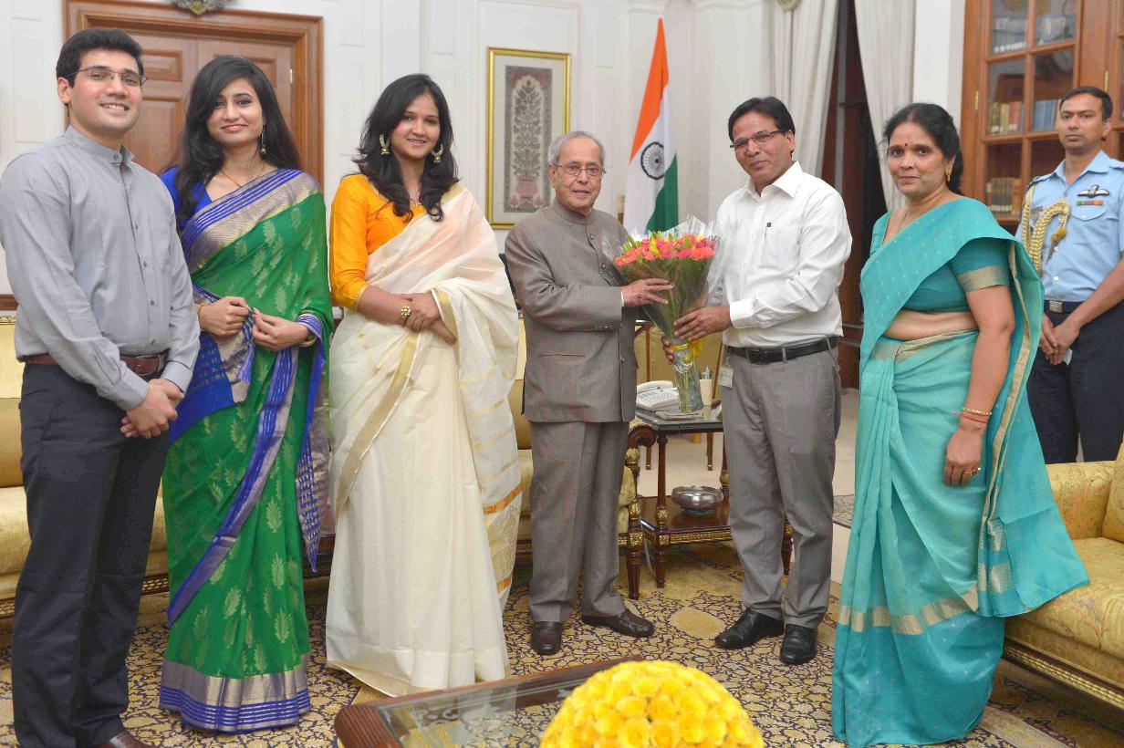 | Caption: | The President of India, Shri Pranab Mukherjee meeting with Shri U.D. Kukreti, OSD (Horticulture), Rashtrapati Bhavan alongwith his family members during a farewell call, at Rashtrapati Bhavan on May 29, 2017. |