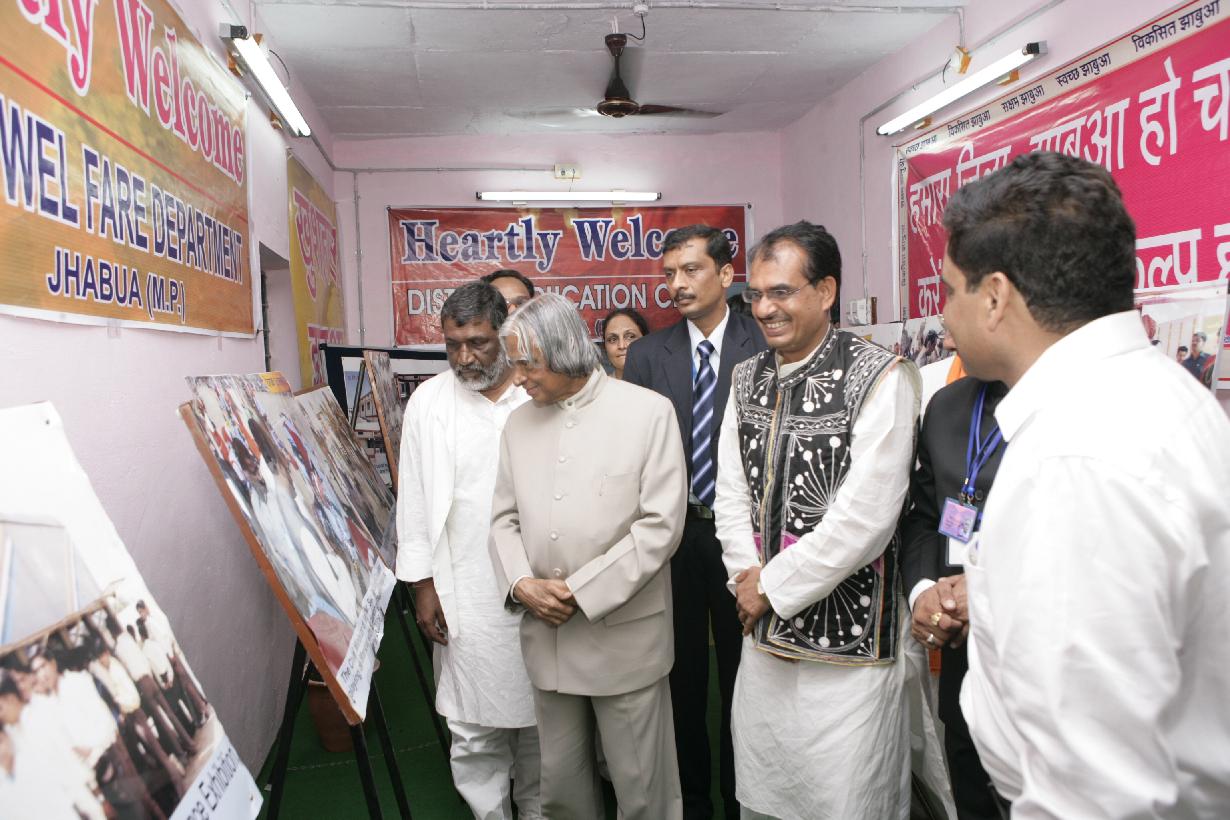 | Caption: | The President of India, Dr A P J Abdul Kalam visiting the Adivasi Middle School to see the Headstart Programme and interacting with the Children and Villagers at Jhabua in Madhya Pradesh on July 17, 2006 |