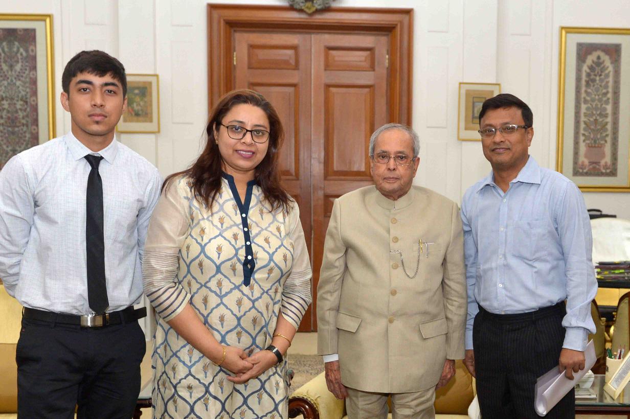 | Caption: | The President of India, Shri Pranab Mukherjee meeting with Shri Dibyendu Barua, Chess Grandmaster from Kolkata alongwith his wife Smt. Saheli Barua and son Shri Dishan Barua, at Rashtrapati Bhavan on May 31, 2017. |