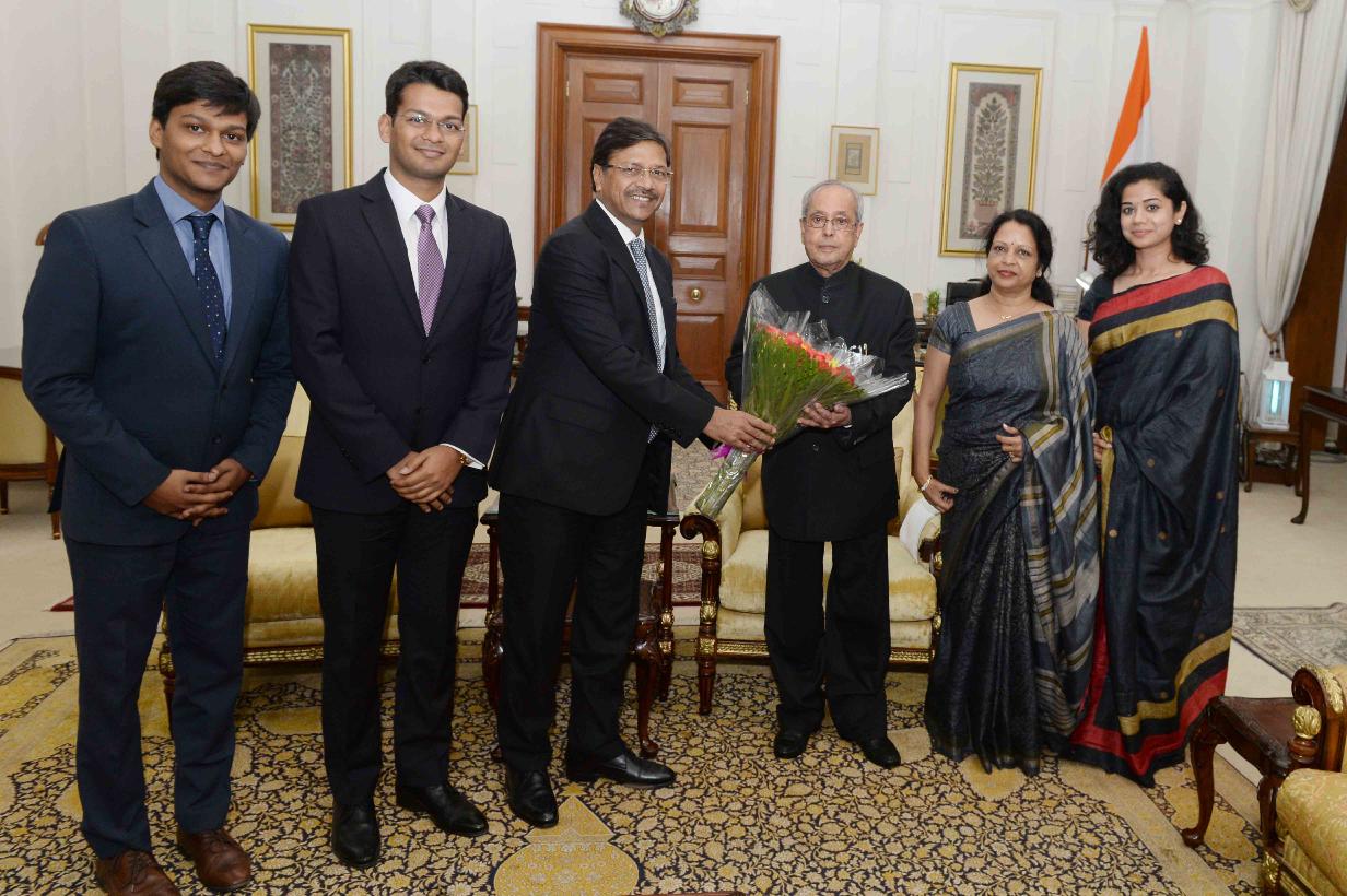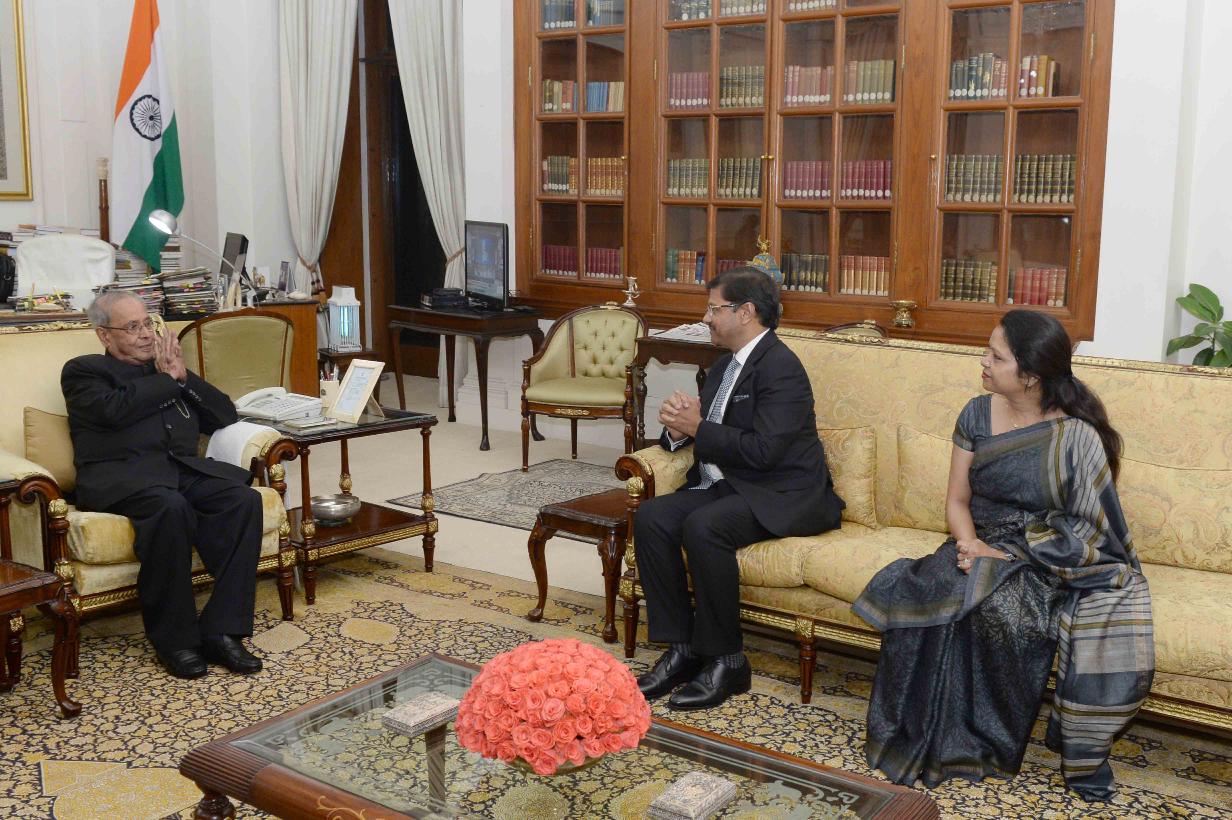 | Caption: | The President of India, Shri Pranab Mukherjee meeting with Dr. Anoop Kumar Mittal, Chairman & Managing Director, NBCC (India) Limited alongwith his family members, at Rashtrapati Bhavan on May 27, 2017. |