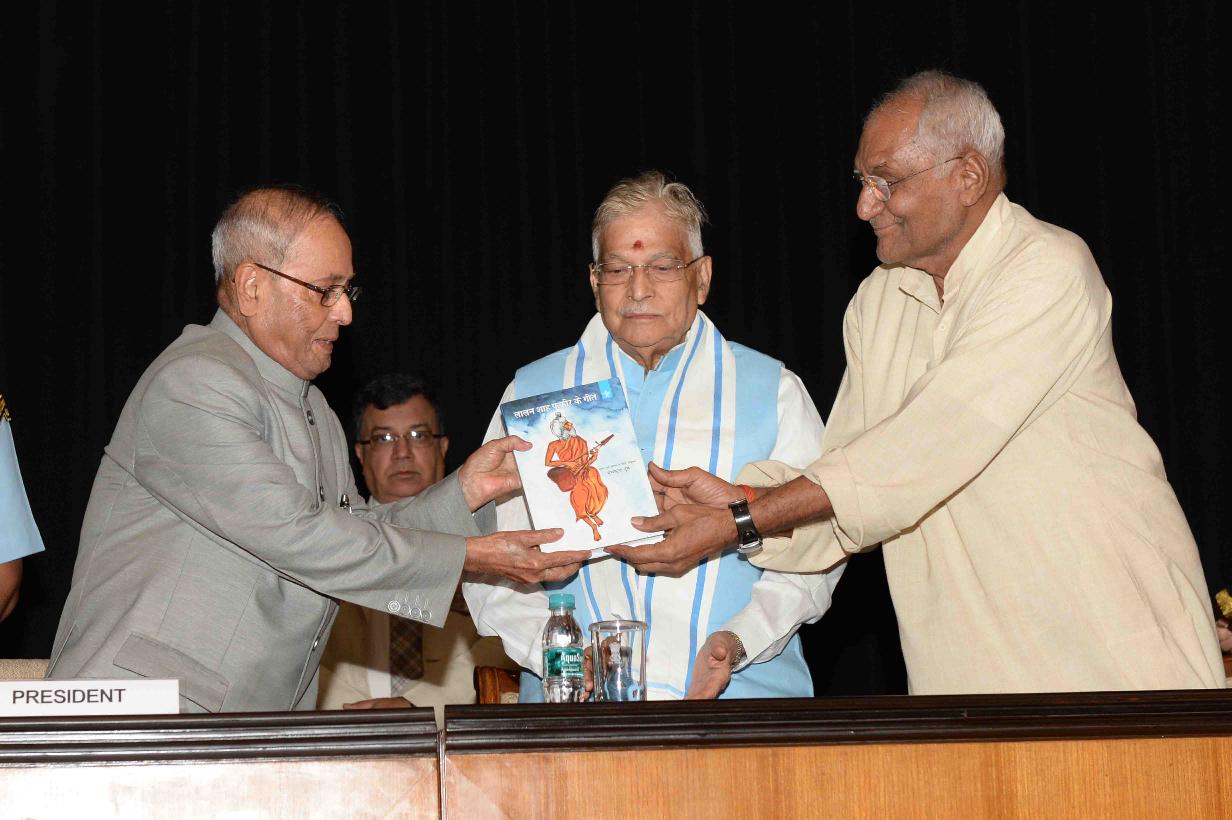 | Caption: | The President of India, Shri Pranab Mukherjee receiving a copy of the Book of Hindi Translation of Bengali Songs of Lalan Shah Fakir by Prof. Muchkund Dubey and a DVD of the songs, at Auditorium, Rashtrapati Bhavan Cultural Center on June 03, 2017. |