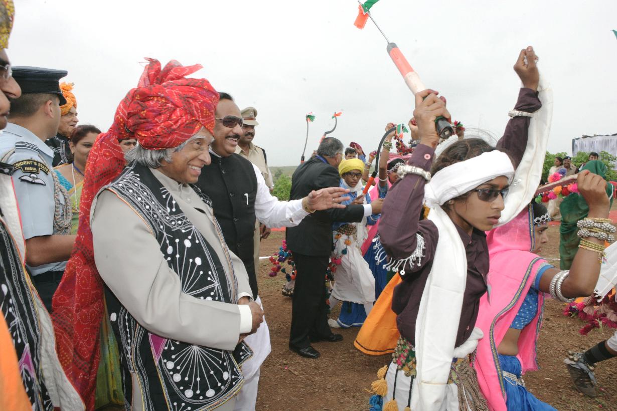 | Caption: | The President of India, Dr A P J Abdul Kalam visiting the Watershed and Jatropha Plantation Site at Jhabua in Madhya Pradesh on July 17, 2006 |
