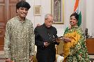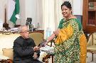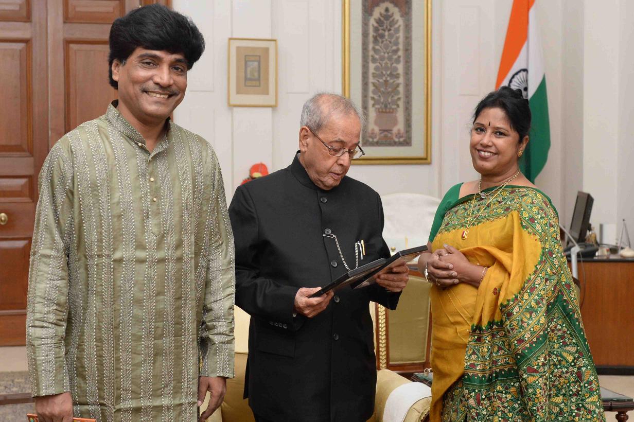 | Caption: | The President of India, Shri Pranab Mukherjee meeting with Smt. Sutapa Dutta, Station Director, All India Radio, Kolkata alongwith Shri Agnivo Bandopadhyay, at Rashtrapati Bhavan on June 12, 2017. |