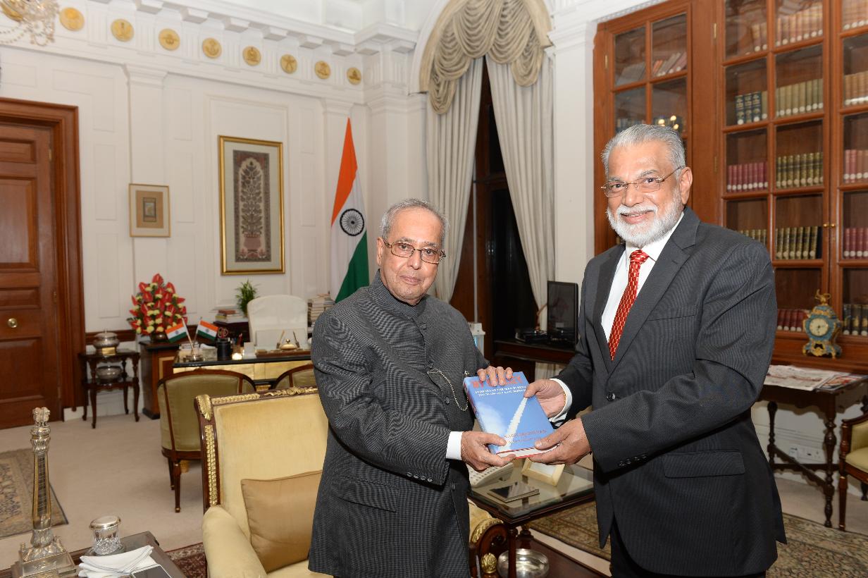 | Caption: | The President of India, Shri Pranab Mukherjee receiving a book ''My Odyssey: Memoirs of the Man behind the Mangalayaan Mission'' from Dr. K. Radhakrishnan, former Chairman, Space Commission & Advisor, Department of Space/ISRO, at Rashtrapati Bhavan on November 17, 2016. |