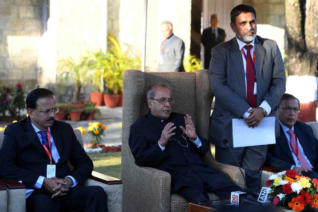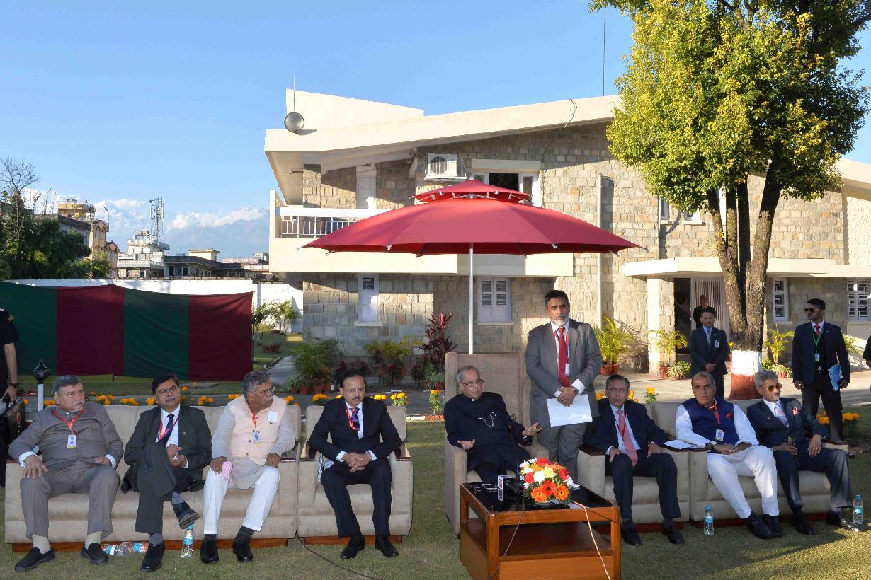 | Caption: | The President of India, Shri Pranab Mukherjee interacting with the accompanying media persons, at Pension Payment Office, Pokhara, in Nepal on November 04, 2016. |